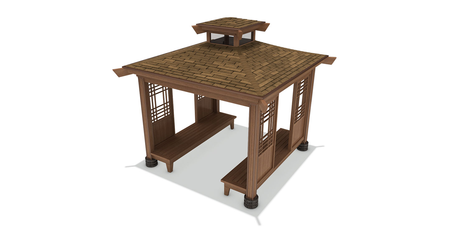 팀버 젠 스퀘어 파빌리온(TIMBER ZEN SQUARE PAVILION)|DAUM-P-140 제품목록으로 바로가기 자료 및 바로가기 나라장터 바로연결 도면 다운로드 시공사진 보러가기 기타 간결한 사각 프레임과 기와 질감의 루프, 살대형 스크린이 조화를 이뤄 절제된 동양미를 보여줍니다. 루프 중앙의 솟은 통기구와 하부의 대면형 평상 벤치를 통해 단지 내에서 차분하게 담소를 나누기 좋은 명상 공간을 제공합니다. 제품명 팀버 젠 스퀘어 파빌리온(TIMBER ZEN SQUARE PAVILION)|DAUM-P-140 물품식별번호 23142062 규격 4,300 X 4,300 X 3,990(H) 재질 stl, hard wood, asphalt shingle, polycarbonate, 화강석 팀버 젠 스퀘어 파빌리온(TIMBER ZEN SQUARE PAVILION)|DAUM-P-140 물품식별번호 23142062 규격 4,300 X 4,300 X 3,990(H) 재질 stl, hard wood, asphalt shingle, polycarbonate, 화강석 기타 간결한 사각 프레임과 기와 질감의 루프, 살대형 스크린이 조화를 이뤄 절제된 동양미를 보여줍니다. 루프 중앙의 솟은 통기구와 하부의 대면형 평상 벤치를 통해 단지 내에서 차분하게 담소를 나누기 좋은 명상 공간을 제공합니다. 자료 및 바로가기 나라장터 바로연결 도면 다운로드 시공사진 보러가기