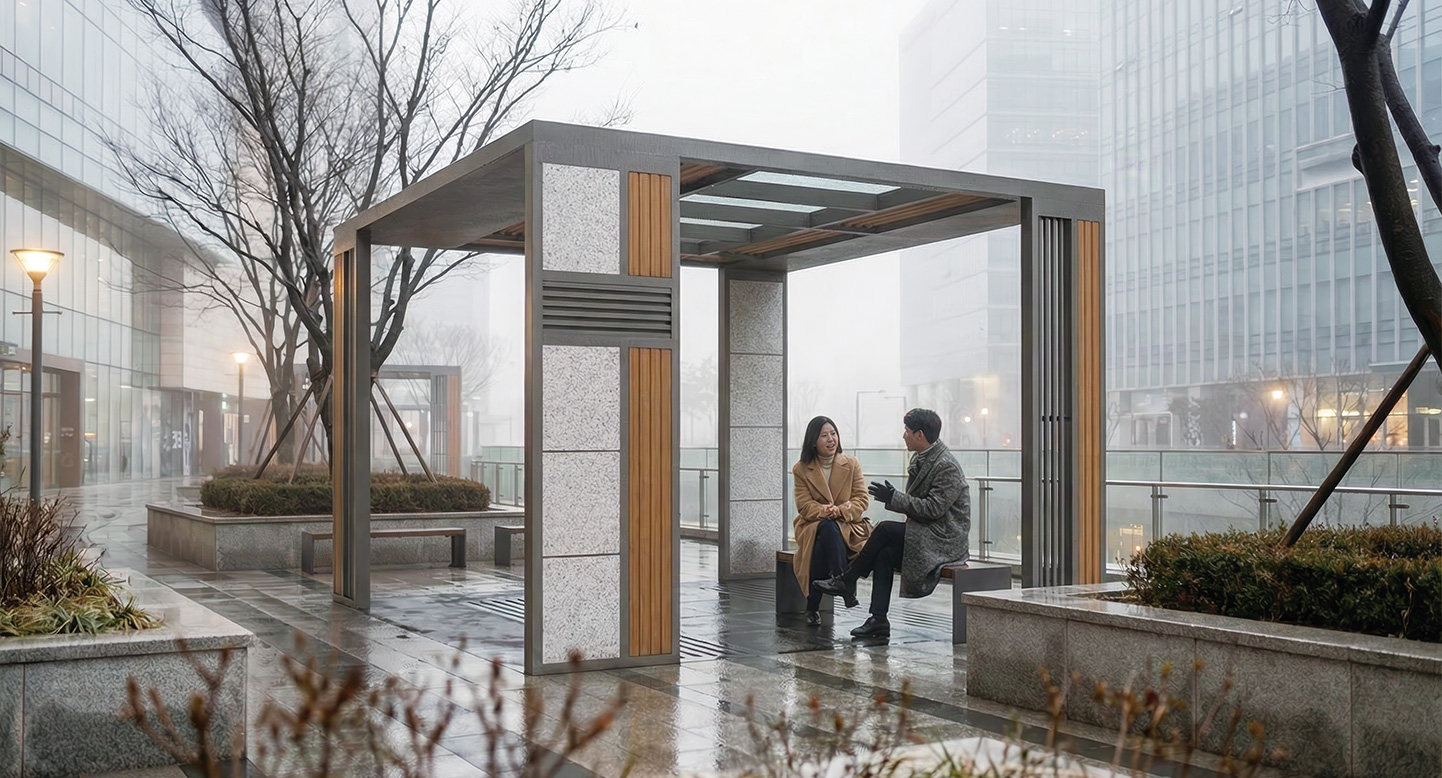 솔리드 라운지 베이직(SOLID LOUNGE BASIC)|DAUM-P-193 제품목록으로 바로가기 자료 및 바로가기 나라장터 바로연결 도면 다운로드 시공사진 보러가기 기타 대리석과 우드, 스틸 프레임의 조합으로 완성된 정사각 기본형 구조로, 단정한 비례와 안정적인 형태가 공공 공간 어디에나 자연스럽게 어우러지는 휴식 쉘터입니다. 제품명 솔리드 라운지 베이직(SOLID LOUNGE BASIC)|DAUM-P-193 물품식별번호 25017778 규격 3,800 X 3,800 X 2,600(H) 재질 stl, galvanized, hard wood, polycarbonate 솔리드 라운지 베이직(SOLID LOUNGE BASIC)|DAUM-P-193 물품식별번호 25017778 규격 3,800 X 3,800 X 2,600(H) 재질 stl, galvanized, hard wood, polycarbonate 기타 대리석과 우드, 스틸 프레임의 조합으로 완성된 정사각 기본형 구조로, 단정한 비례와 안정적인 형태가 공공 공간 어디에나 자연스럽게 어우러지는 휴식 쉘터입니다. 자료 및 바로가기 나라장터 바로연결 도면 다운로드 시공사진 보러가기