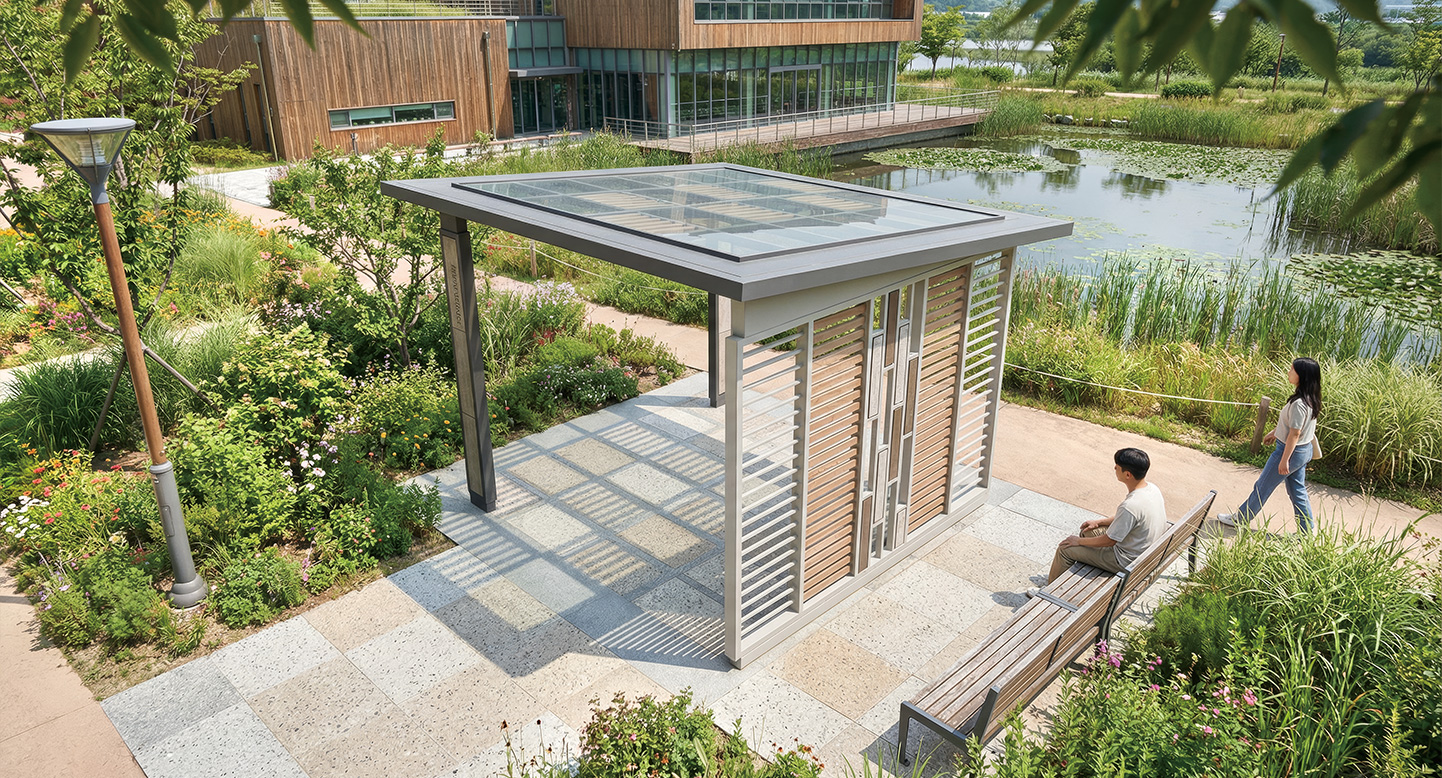 리니어 월 베이직(LINEAR WALL BASIC)|DAUM-P-2110 제품목록으로 바로가기 자료 및 바로가기 나라장터 바로연결 도면 다운로드 시공사진 보러가기 기타 한쪽 벽면에 배치된 두 개의 기둥과 세로 직사각형 패턴이 비스듬한 지붕과 연결되며, 구조적 안정감과 반복 리듬을 통해 모던한 복합 휴식 장면을 단지 내에 자연스럽게 형성합니다. 제품명 리니어 월 베이직(LINEAR WALL BASIC)|DAUM-P-2110 물품식별번호 25671831 규격 3,800 X 3,800 X 2,800(H) 재질 stl, hard wood, galvanized, polycarbonate 리니어 월 베이직(LINEAR WALL BASIC)|DAUM-P-2110 물품식별번호 25671831 규격 3,800 X 3,800 X 2,800(H) 재질 stl, hard wood, galvanized, polycarbonate 기타 한쪽 벽면에 배치된 두 개의 기둥과 세로 직사각형 패턴이 비스듬한 지붕과 연결되며, 구조적 안정감과 반복 리듬을 통해 모던한 복합 휴식 장면을 단지 내에 자연스럽게 형성합니다. 자료 및 바로가기 나라장터 바로연결 도면 다운로드 시공사진 보러가기