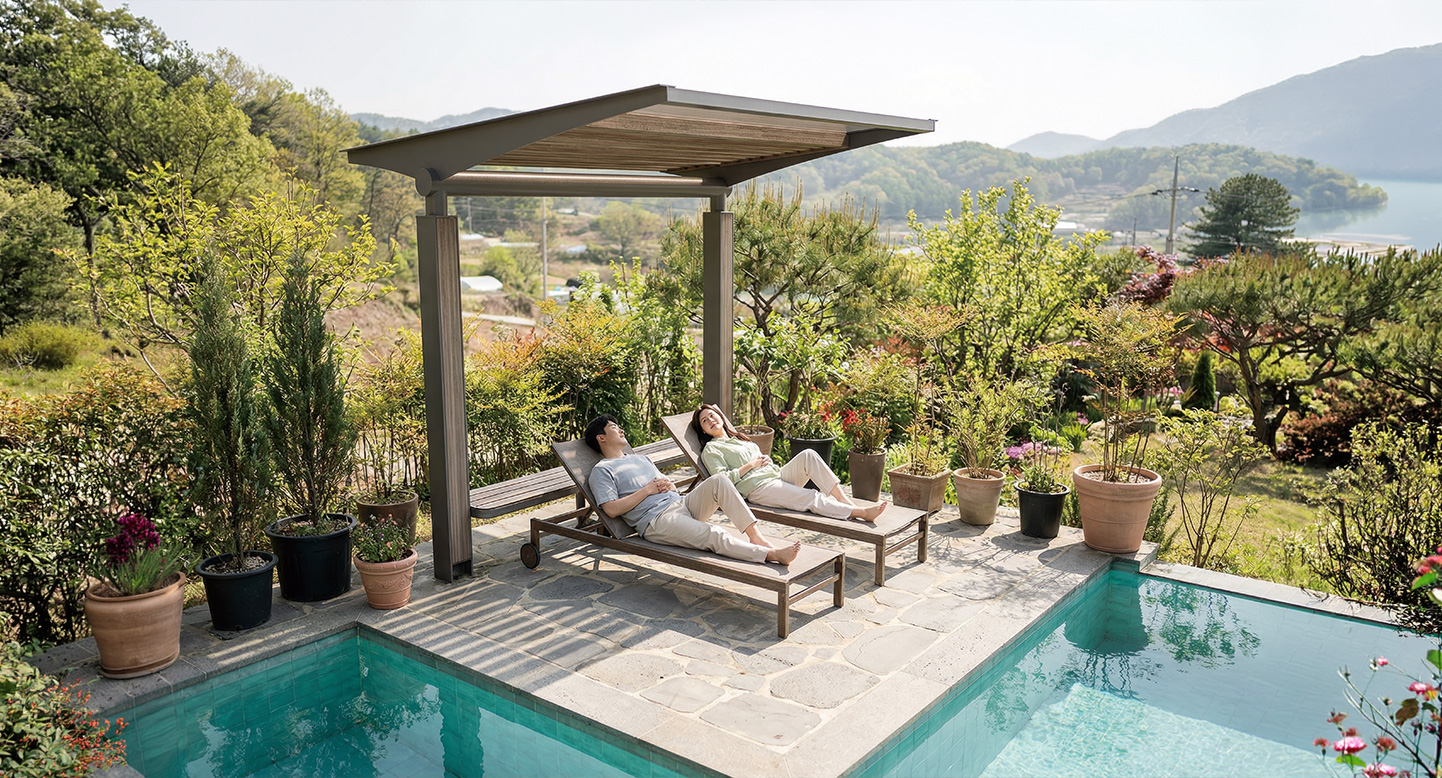 심플 슬랜트 핏(SIMPLE-SLANT FIT)|DAUM-P-427A 제품목록으로 바로가기 자료 및 바로가기 나라장터 바로연결 도면 다운로드 시공사진 보러가기 기타 기둥 끝에서 비스듬히 뻗어 나온 경사 지붕이 세련된 건축미를 보여줍니다. 간결한 구조 덕분에 시각적 방해 없이 풍경을 감상할 수 있는 모던한 쉘터입니다. 제품명 심플 슬랜트 핏(SIMPLE-SLANT FIT)|DAUM-P-427A 물품식별번호 24147638 규격 2,500 X 2,400 X 2,450(H) 재질 stl, hard wood, polycarbonate 심플 슬랜트 핏(SIMPLE-SLANT FIT)|DAUM-P-427A 물품식별번호 24147638 규격 2,500 X 2,400 X 2,450(H) 재질 stl, hard wood, polycarbonate 기타 기둥 끝에서 비스듬히 뻗어 나온 경사 지붕이 세련된 건축미를 보여줍니다. 간결한 구조 덕분에 시각적 방해 없이 풍경을 감상할 수 있는 모던한 쉘터입니다. 자료 및 바로가기 나라장터 바로연결 도면 다운로드 시공사진 보러가기