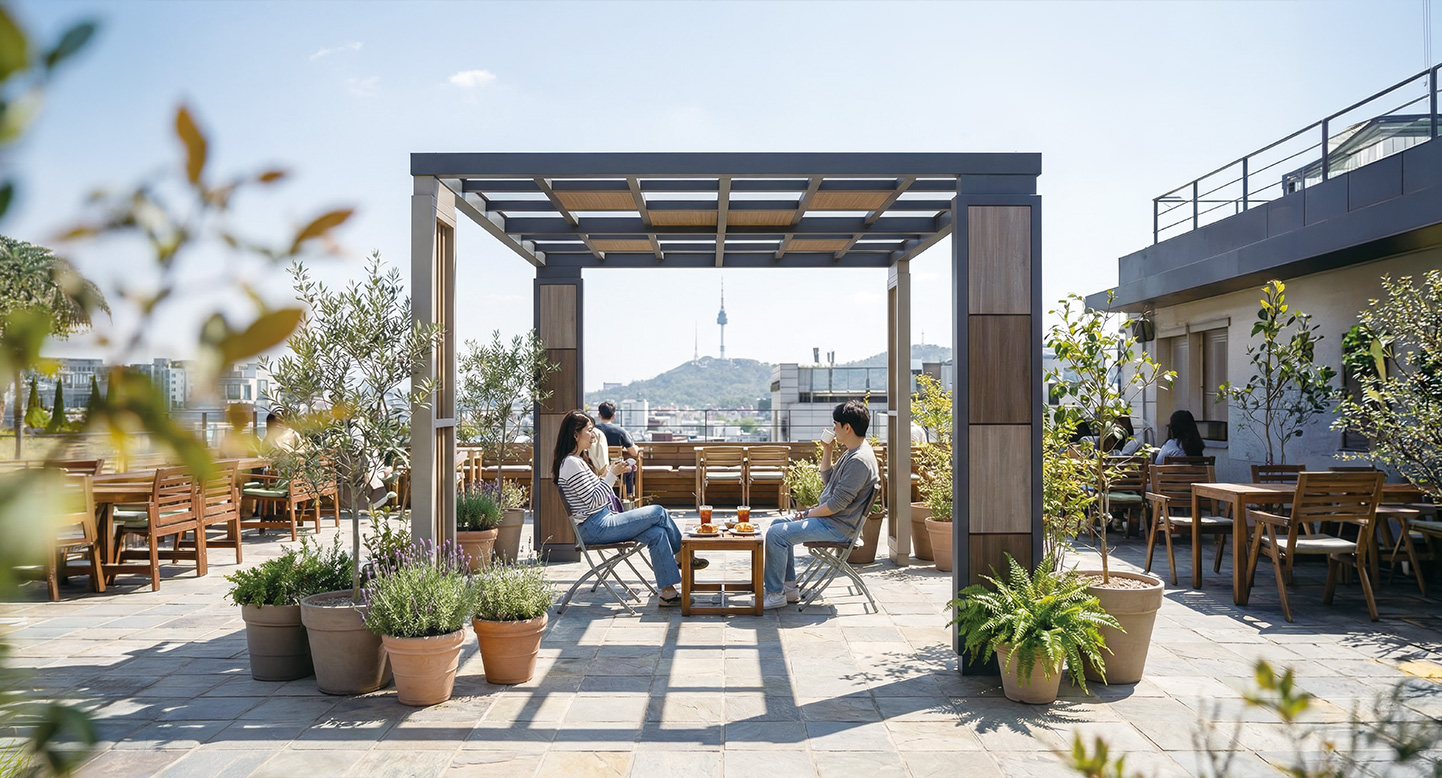 우드 블록 핏(WOOD-BLOCK FIT)|DAUM-P-2141 제품목록으로 바로가기 자료 및 바로가기 나라장터 바로연결 도면 다운로드 시공사진 보러가기 기타 기둥의 우드 블록 패턴이 단정한 포인트가 되는 모델입니다. 심플한 사각 구조로 좁은 공간에도 군더더기 없이 딱 맞게 설치되며, 모던하고 안정적인 느낌을 줍니다. 제품명 우드 블록 핏(WOOD-BLOCK FIT)|DAUM-P-2141 물품식별번호 25939662 규격 3,000 × 3,000 × 2,500(H) 재질 stl, hard wood, galvanized, polycarbonate 우드 블록 핏(WOOD-BLOCK FIT)|DAUM-P-2141 물품식별번호 25939662 규격 3,000 × 3,000 × 2,500(H) 재질 stl, hard wood, galvanized, polycarbonate 기타 기둥의 우드 블록 패턴이 단정한 포인트가 되는 모델입니다. 심플한 사각 구조로 좁은 공간에도 군더더기 없이 딱 맞게 설치되며, 모던하고 안정적인 느낌을 줍니다. 자료 및 바로가기 나라장터 바로연결 도면 다운로드 시공사진 보러가기