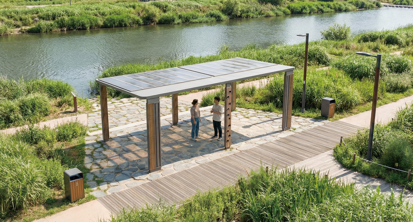 지오 우드 홀(GEO WOOD HALL)|DAUM-P-1790 제품목록으로 바로가기 자료 및 바로가기 나라장터 바로연결 도면 다운로드 시공사진 보러가기 기타 우드 무늬 패널과 기하학적 천장 패턴이 구조적 리듬을 형성하는 사각 대형 라운지로, 비스듬한 지붕이 단지와 산책로 공간에 모던한 쉼의 질서를 더합니다. 제품명 지오 우드 홀(GEO WOOD HALL)|DAUM-P-1790 물품식별번호 25671852 규격 7,600 X 3,800 X 2,750(H) 재질 stl, galvanized, hard wood, polycarbonate, hpl 지오 우드 홀(GEO WOOD HALL)|DAUM-P-1790 물품식별번호 25671852 규격 7,600 X 3,800 X 2,750(H) 재질 stl, galvanized, hard wood, polycarbonate, hpl 기타 우드 무늬 패널과 기하학적 천장 패턴이 구조적 리듬을 형성하는 사각 대형 라운지로, 비스듬한 지붕이 단지와 산책로 공간에 모던한 쉼의 질서를 더합니다. 자료 및 바로가기 나라장터 바로연결 도면 다운로드 시공사진 보러가기