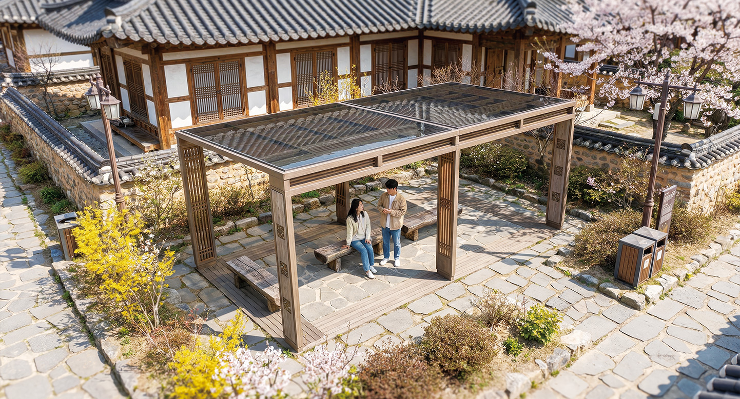 트래디션 라인 홀(TRADITION LINE HALL)|DAUM-P-1788 제품목록으로 바로가기 자료 및 바로가기 나라장터 바로연결 도면 다운로드 시공사진 보러가기 기타 전통 문양이 적용된 창호 패턴 기둥과 우드 디테일이 조화를 이루는 사각 대형 라운지로, 비스듬한 지붕이 단지와 관광지 공간에 차분한 휴식 분위기를 더합니다. 제품명 트래디션 라인 홀(TRADITION LINE HALL)|DAUM-P-1788 물품식별번호 25671850 규격 8,000 X 4,000 X 2,800(H) 재질 stl, galvanized, hard wood, polycarbonate, hpl 트래디션 라인 홀(TRADITION LINE HALL)|DAUM-P-1788 물품식별번호 25671850 규격 8,000 X 4,000 X 2,800(H) 재질 stl, galvanized, hard wood, polycarbonate, hpl 기타 전통 문양이 적용된 창호 패턴 기둥과 우드 디테일이 조화를 이루는 사각 대형 라운지로, 비스듬한 지붕이 단지와 관광지 공간에 차분한 휴식 분위기를 더합니다. 자료 및 바로가기 나라장터 바로연결 도면 다운로드 시공사진 보러가기