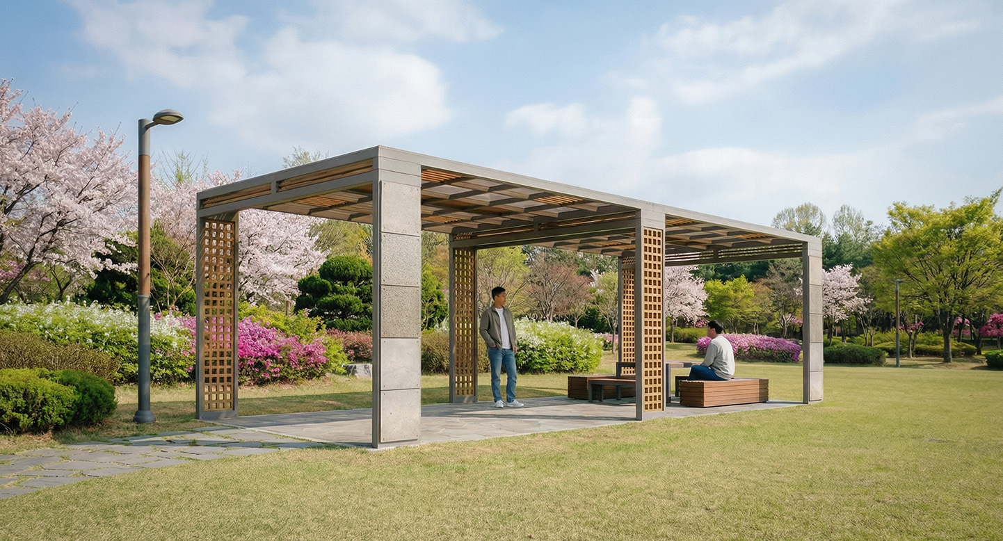 스톤 그리드 홀(STONE GRID HALL)|DAUM-P-1784 제품목록으로 바로가기 자료 및 바로가기 나라장터 바로연결 도면 다운로드 시공사진 보러가기 기타 스톤 질감 기둥과 규칙적인 격자 구조가 시각적 안정감을 형성해, 단지 내 열린 공간에서도 정돈된 휴식 환경을 제공한다. 제품명 스톤 그리드 홀(STONE GRID HALL)|DAUM-P-1784 물품식별번호 25671847 규격 8,000 X 4,000 X 2,765(H) 재질 stl, galvanized, hard wood, polycarbonate, hpl 스톤 그리드 홀(STONE GRID HALL)|DAUM-P-1784 물품식별번호 25671847 규격 8,000 X 4,000 X 2,765(H) 재질 stl, galvanized, hard wood, polycarbonate, hpl 기타 스톤 질감 기둥과 규칙적인 격자 구조가 시각적 안정감을 형성해, 단지 내 열린 공간에서도 정돈된 휴식 환경을 제공한다. 자료 및 바로가기 나라장터 바로연결 도면 다운로드 시공사진 보러가기