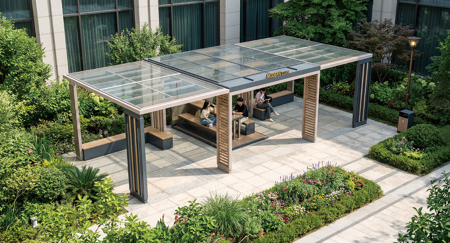 모던윈도우 홀 프라임(MODERN-WINDOW HALL PRIME)|DAUM-P-2721 제품목록으로 바로가기 자료 및 바로가기 나라장터 바로연결 도면 다운로드 시공사진 보러가기 기타 푸른빛이 감도는 차콜 프레임이 세련된 도시 감성을 자아내며, 중앙의 사각 오프닝 파티션이 개방감을 더해줍니다. 오피스 단지나 상업 지구의 야외 공간에서 소통과 휴식을 동시에 즐기는 모던한 커뮤니티 라운지입니다. 제품명 모던윈도우 홀 프라임(MODERN-WINDOW HALL PRIME)|DAUM-P-2721 물품식별번호 25939121 규격 10,000 × 4,500 × 2,650(H) 재질 stl, galvanized, hard wood, polycarbonate, hpl 모던윈도우 홀 프라임(MODERN-WINDOW HALL PRIME)|DAUM-P-2721 물품식별번호 25939121 규격 10,000 × 4,500 × 2,650(H) 재질 stl, galvanized, hard wood, polycarbonate, hpl 기타 푸른빛이 감도는 차콜 프레임이 세련된 도시 감성을 자아내며, 중앙의 사각 오프닝 파티션이 개방감을 더해줍니다. 오피스 단지나 상업 지구의 야외 공간에서 소통과 휴식을 동시에 즐기는 모던한 커뮤니티 라운지입니다. 자료 및 바로가기 나라장터 바로연결 도면 다운로드 시공사진 보러가기