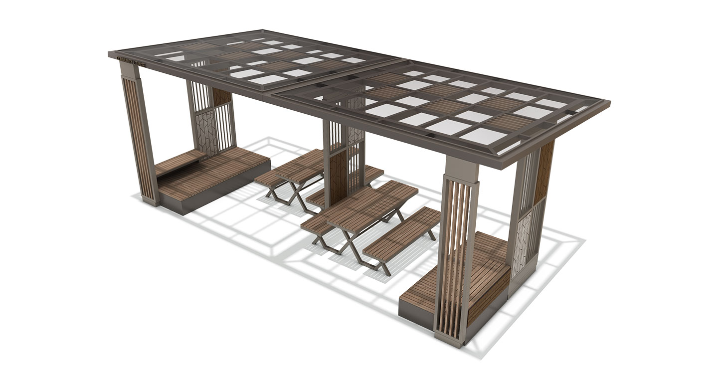 슬랫 라운지 홀 프라임(SLAT LOUNGE HALL PRIME)|DAUM-P-2710 제품목록으로 바로가기 자료 및 바로가기 나라장터 바로연결 도면 다운로드 시공사진 보러가기 기타 기둥의 빗살 무늬 패턴이 적용된 비스듬한 지붕 구조로, 시각적인 개방감과 통풍감을 살리며 공원과 단지 내에서 가볍게 머무는 모던한 쉘터 휴식 공간을 완성합니다. 제품명 슬랫 라운지 홀 프라임(SLAT LOUNGE HALL PRIME)|DAUM-P-2710 물품식별번호 25828423 규격 7,600 × 3,800 × 2,800(H) 재질 stl, galvanized, hard wood, polycarbonate, hpl 슬랫 라운지 홀 프라임(SLAT LOUNGE HALL PRIME)|DAUM-P-2710 물품식별번호 25828423 규격 7,600 × 3,800 × 2,800(H) 재질 stl, galvanized, hard wood, polycarbonate, hpl 기타 기둥의 빗살 무늬 패턴이 적용된 비스듬한 지붕 구조로, 시각적인 개방감과 통풍감을 살리며 공원과 단지 내에서 가볍게 머무는 모던한 쉘터 휴식 공간을 완성합니다. 자료 및 바로가기 나라장터 바로연결 도면 다운로드 시공사진 보러가기