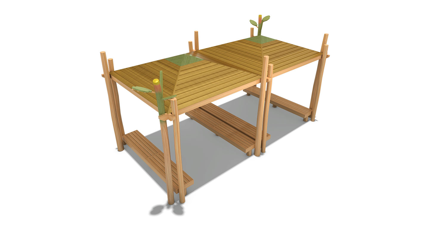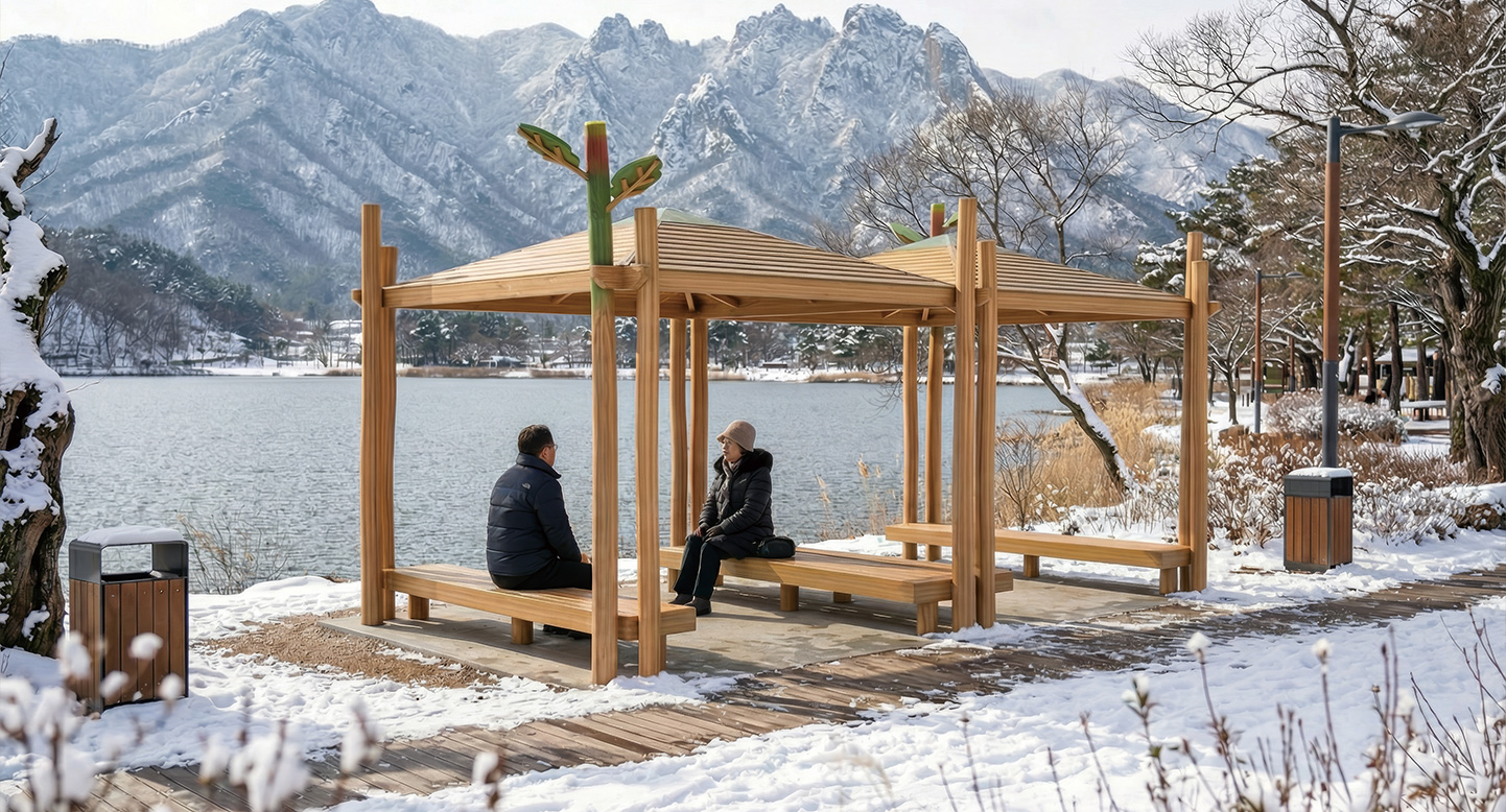 트윈 벤치 로비니아(TWIN BENCH ROBINIA)|DAUMP-RO-009-2 제품목록으로 바로가기 자료 및 바로가기 나라장터 바로연결 도면 다운로드 시공사진 보러가기 기타 두 개의 벤치형 퍼걸러가 연결된 구조로, 다수의 인원이 함께 쉴 수 있습니다. 원목의 따뜻한 질감이 이용자들에게 심리적인 안정감을 제공합니다. 제품명 트윈 벤치 로비니아(TWIN BENCH ROBINIA)|DAUMP-RO-009-2 물품식별번호 25039230 규격 7,990 X 4,210 X 3,500(H) 재질 아까시 , hardwood, birch plywood 트윈 벤치 로비니아(TWIN BENCH ROBINIA)|DAUMP-RO-009-2 물품식별번호 25039230 규격 7,990 X 4,210 X 3,500(H) 재질 아까시 , hardwood, birch plywood 기타 두 개의 벤치형 퍼걸러가 연결된 구조로, 다수의 인원이 함께 쉴 수 있습니다. 원목의 따뜻한 질감이 이용자들에게 심리적인 안정감을 제공합니다. 자료 및 바로가기 나라장터 바로연결 도면 다운로드 시공사진 보러가기