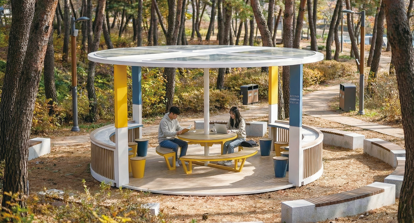 비비드 라운드 아고라(VIVID ROUND AGORA)|DAUM-P-2764 제품목록으로 바로가기 자료 및 바로가기 나라장터 바로연결 도면 다운로드 시공사진 보러가기 기타 옐로우와 블루 포인트 기둥이 돋보이는 원형 학습장입니다. 중앙 테이블과 외곽 벤치가 조화를 이루어 다채로운 모둠 활동과 자유로운 소통이 가능합니다. 제품명 비비드 라운드 아고라(VIVID ROUND AGORA)|DAUM-P-2764 물품식별번호 25939656 규격 6,000 × 6,000 × 2,900(H) 재질 stl, galvanized, hard wood, polycarbonate, hpl 비비드 라운드 아고라(VIVID ROUND AGORA)|DAUM-P-2764 물품식별번호 25939656 규격 6,000 × 6,000 × 2,900(H) 재질 stl, galvanized, hard wood, polycarbonate, hpl 기타 옐로우와 블루 포인트 기둥이 돋보이는 원형 학습장입니다. 중앙 테이블과 외곽 벤치가 조화를 이루어 다채로운 모둠 활동과 자유로운 소통이 가능합니다. 자료 및 바로가기 나라장터 바로연결 도면 다운로드 시공사진 보러가기