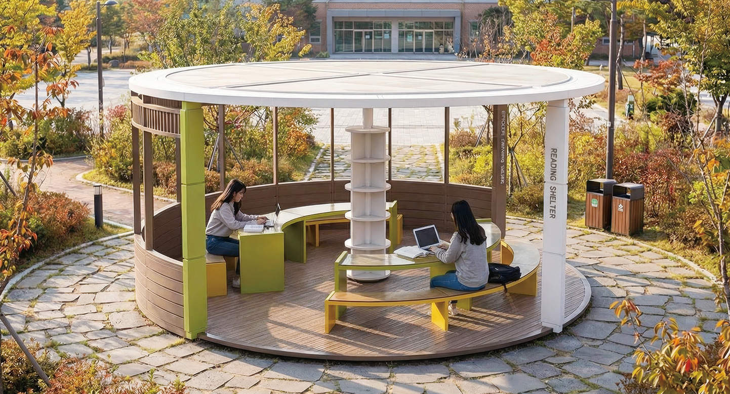 라운드 호라이즌 아고라(ROUND HORIZON AGORA)|DAUM-P-2760 제품목록으로 바로가기 자료 및 바로가기 나라장터 바로연결 도면 다운로드 시공사진 보러가기 기타 중후한 브라운 톤의 루버와 연속된 커브형 벤치가 안정감을 줍니다. 넓은 공간감과 중앙 집중형 책장 구조를 갖추어 야외 기록관 같은 차분한 분위기를 연출합니다. 제품명 라운드 호라이즌 아고라(ROUND HORIZON AGORA)|DAUM-P-2760 물품식별번호 25939652 규격 7,000 × 7,000 × 3,000(H) 재질 stl, galvanized, hard wood, polycarbonate, hpl 라운드 호라이즌 아고라(ROUND HORIZON AGORA)|DAUM-P-2760 물품식별번호 25939652 규격 7,000 × 7,000 × 3,000(H) 재질 stl, galvanized, hard wood, polycarbonate, hpl 기타 중후한 브라운 톤의 루버와 연속된 커브형 벤치가 안정감을 줍니다. 넓은 공간감과 중앙 집중형 책장 구조를 갖추어 야외 기록관 같은 차분한 분위기를 연출합니다. 자료 및 바로가기 나라장터 바로연결 도면 다운로드 시공사진 보러가기