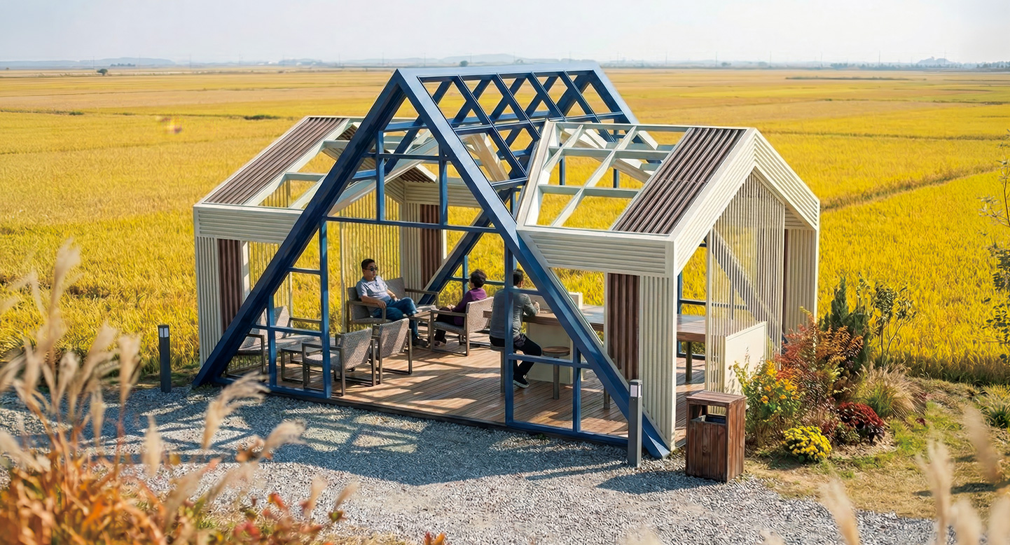 더 로얄 네이비 하우스(THE ROYAL NAVY HOUSE )|DAUM-P-1773 제품목록으로 바로가기 자료 및 바로가기 나라장터 바로연결 도면 다운로드 시공사진 보러가기 기타 깊이 있는 네이비 컬러 프레임과 투명 루프가 어우러져 세련된 도시적 감성을 자아냅니다. 구조미가 돋보이는 프레임 디자인은 견고함과 모던함을 동시에 보여주며, 차분하고 지적인 휴식을 위한 고품격 쉼터입니다. 제품명 더 로얄 네이비 하우스(THE ROYAL NAVY HOUSE )|DAUM-P-1773 물품식별번호 25027531 규격 7,000 X 5,000 X 4,217(H) 재질 stl, galvanized, polycarbonate, hpl, hard wood 더 로얄 네이비 하우스(THE ROYAL NAVY HOUSE )|DAUM-P-1773 물품식별번호 25027531 규격 7,000 X 5,000 X 4,217(H) 재질 stl, galvanized, polycarbonate, hpl, hard wood 기타 깊이 있는 네이비 컬러 프레임과 투명 루프가 어우러져 세련된 도시적 감성을 자아냅니다. 구조미가 돋보이는 프레임 디자인은 견고함과 모던함을 동시에 보여주며, 차분하고 지적인 휴식을 위한 고품격 쉼터입니다. 자료 및 바로가기 나라장터 바로연결 도면 다운로드 시공사진 보러가기