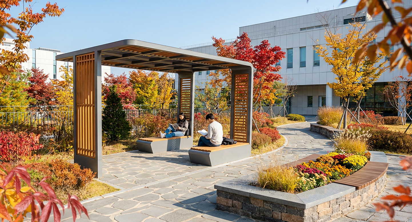 모던 루버 플러스(MODERN LOUVER PLUS)|DAUM-P-117 제품목록으로 바로가기 자료 및 바로가기 나라장터 바로연결 도면 다운로드 시공사진 보러가기 기타 부드러운 라운드 포인트가 적용된 일체형 프레임과 기둥의 수직 루버 디테일이 현대적인 건축미를 선사합니다. 양측에 설계된 독립형 벤치와 정갈한 루버 월을 통해 단지 내 공간에 개방적이면서도 아늑한 프리미엄 휴식처를 제공합니다. 제품명 모던 루버 플러스(MODERN LOUVER PLUS)|DAUM-P-117 물품식별번호 23142037 규격 3,000 X 4,000 X 2,900(H) 재질 stl, galvanized, hard wood, polycarbonate 모던 루버 플러스(MODERN LOUVER PLUS)|DAUM-P-117 물품식별번호 23142037 규격 3,000 X 4,000 X 2,900(H) 재질 stl, galvanized, hard wood, polycarbonate 기타 부드러운 라운드 포인트가 적용된 일체형 프레임과 기둥의 수직 루버 디테일이 현대적인 건축미를 선사합니다. 양측에 설계된 독립형 벤치와 정갈한 루버 월을 통해 단지 내 공간에 개방적이면서도 아늑한 프리미엄 휴식처를 제공합니다. 자료 및 바로가기 나라장터 바로연결 도면 다운로드 시공사진 보러가기