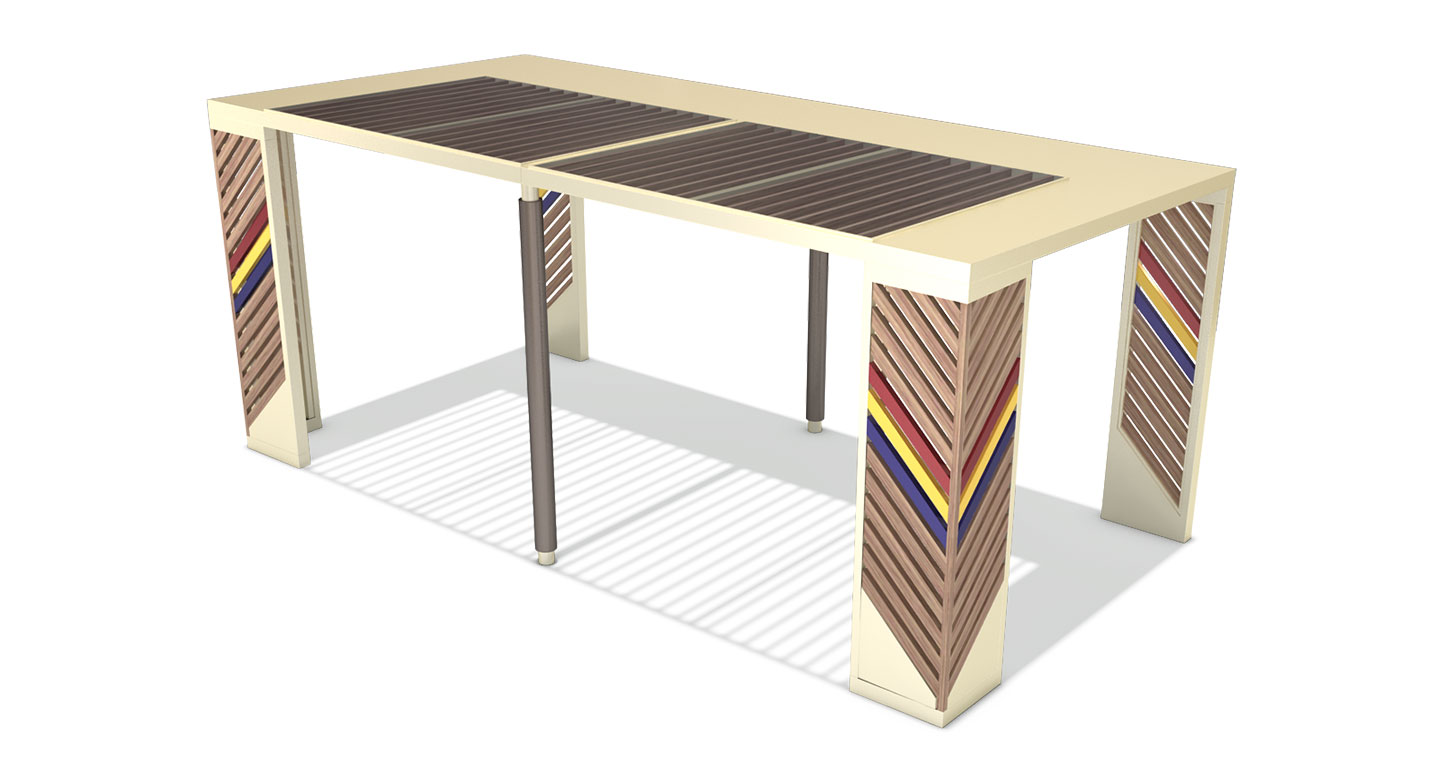 헤링본 비비드 홀(HERRINGBONE VIVID HALL)|DAUM-P-1747 제품목록으로 바로가기 자료 및 바로가기 나라장터 바로연결 도면 다운로드 시공사진 보러가기 기타 사선으로 교차하는 헤링본 패턴의 목재 루버와 선명한 포인트 컬러가 어우러져 경쾌하고 감각적인 경관을 연출합니다. 대형 루프가 제공하는 넉넉한 그늘과 개방감 있는 구조를 통해 단지 내 공간에 생동감을 더하는 고품격 프리미엄 대형 쉼터를 제공합니다. 제품명 헤링본 비비드 홀(HERRINGBONE VIVID HALL)|DAUM-P-1747 물품식별번호 25027509 규격 6,000 X 3,000 X 2,600(H) 재질 stl, galvanized, hard wood, polycarbonate 헤링본 비비드 홀(HERRINGBONE VIVID HALL)|DAUM-P-1747 물품식별번호 25027509 규격 6,000 X 3,000 X 2,600(H) 재질 stl, galvanized, hard wood, polycarbonate 기타 사선으로 교차하는 헤링본 패턴의 목재 루버와 선명한 포인트 컬러가 어우러져 경쾌하고 감각적인 경관을 연출합니다. 대형 루프가 제공하는 넉넉한 그늘과 개방감 있는 구조를 통해 단지 내 공간에 생동감을 더하는 고품격 프리미엄 대형 쉼터를 제공합니다. 자료 및 바로가기 나라장터 바로연결 도면 다운로드 시공사진 보러가기