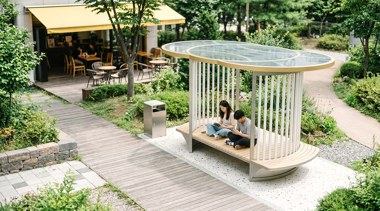 버티컬 케이지 평상 라운드(VERTICAL CAGE DECK ROUND)|DAUM-P-466 제품목록으로 바로가기 자료 및 바로가기 나라장터 바로연결 도면 다운로드 시공사진 보러가기 기타 촘촘한 수직 창살 프레임이 루프와 평상을 감싸듯 연결되어 마치 거대한 새장을 연상시키는 유니크한 조형미를 보여줍니다. 넓은 평상 데크와 곡선형 보조 벤치를 통합하여 단지 내 수변 공간이나 테라스에서 쾌적한 평상 휴식을 제공합니다. 제품명 버티컬 케이지 평상 라운드(VERTICAL CAGE DECK ROUND)|DAUM-P-466 물품식별번호 25022274 규격 4,100 X 2,500 X 2,475(H) 재질 stl, hard wood, polycarbonate, galvanized 버티컬 케이지 평상 라운드(VERTICAL CAGE DECK ROUND)|DAUM-P-466 물품식별번호 25022274 규격 4,100 X 2,500 X 2,475(H) 재질 stl, hard wood, polycarbonate, galvanized 기타 촘촘한 수직 창살 프레임이 루프와 평상을 감싸듯 연결되어 마치 거대한 새장을 연상시키는 유니크한 조형미를 보여줍니다. 넓은 평상 데크와 곡선형 보조 벤치를 통합하여 단지 내 수변 공간이나 테라스에서 쾌적한 평상 휴식을 제공합니다. 자료 및 바로가기 나라장터 바로연결 도면 다운로드 시공사진 보러가기