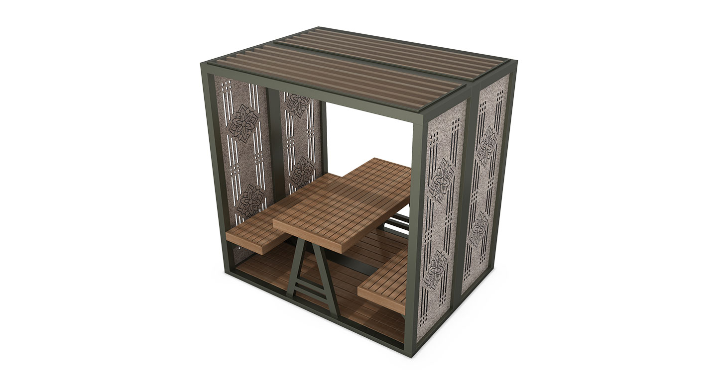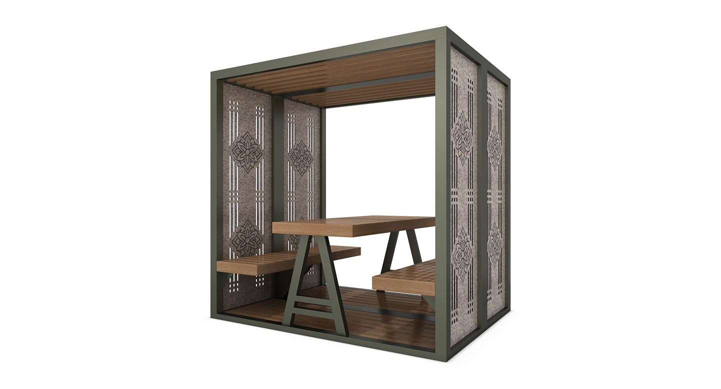 앤틱 패널 핏(ANTIQUE-PANEL FIT)|DAUM-P-429A-1 제품목록으로 바로가기 자료 및 바로가기 나라장터 바로연결 도면 다운로드 시공사진 보러가기 기타 측면의 정교한 전통 타공 패널이 특징인 프리미엄 미니 쉘터입니다. 패널 사이로 스며드는 빛과 그림자가 공간에 고풍스러운 품격을 더해줍니다. 제품명 앤틱 패널 핏(ANTIQUE-PANEL FIT)|DAUM-P-429A-1 물품식별번호 25031339 규격 2,150 X 1,500 X 2,120(H) 재질 stl, hard wood, pc, hpl 앤틱 패널 핏(ANTIQUE-PANEL FIT)|DAUM-P-429A-1 물품식별번호 25031339 규격 2,150 X 1,500 X 2,120(H) 재질 stl, hard wood, pc, hpl 기타 측면의 정교한 전통 타공 패널이 특징인 프리미엄 미니 쉘터입니다. 패널 사이로 스며드는 빛과 그림자가 공간에 고풍스러운 품격을 더해줍니다. 자료 및 바로가기 나라장터 바로연결 도면 다운로드 시공사진 보러가기