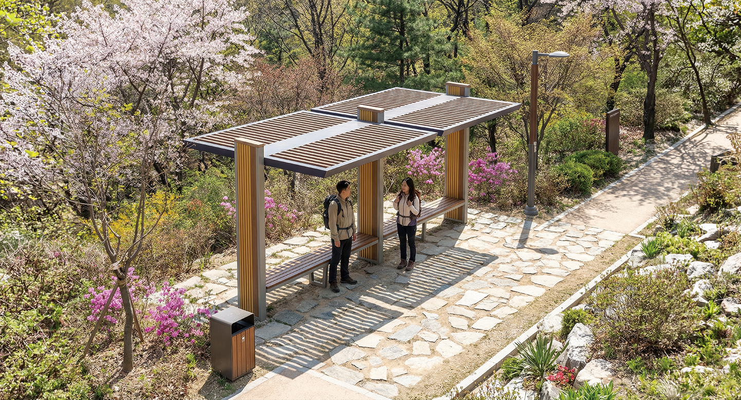 노블 벤치 라인(NOBLE BENCH LINE)|DAUM-P-436-2 제품목록으로 바로가기 자료 및 바로가기 나라장터 바로연결 도면 다운로드 시공사진 보러가기 기타 네이비 지붕 프레임과 골드 톤의 수직 루버 장식이 귀족적인 분위기를 자아냅니다. 강렬한 색감 대비가 고급스러운 휴식 공간을 연출합니다. 제품명 노블 벤치 라인(NOBLE BENCH LINE)|DAUM-P-436-2 물품식별번호 25019829 규격 5,100 X 2,600 X 2,500(H) 재질 stl, hard wood, polycarbonate 노블 벤치 라인(NOBLE BENCH LINE)|DAUM-P-436-2 물품식별번호 25019829 규격 5,100 X 2,600 X 2,500(H) 재질 stl, hard wood, polycarbonate 기타 네이비 지붕 프레임과 골드 톤의 수직 루버 장식이 귀족적인 분위기를 자아냅니다. 강렬한 색감 대비가 고급스러운 휴식 공간을 연출합니다. 자료 및 바로가기 나라장터 바로연결 도면 다운로드 시공사진 보러가기