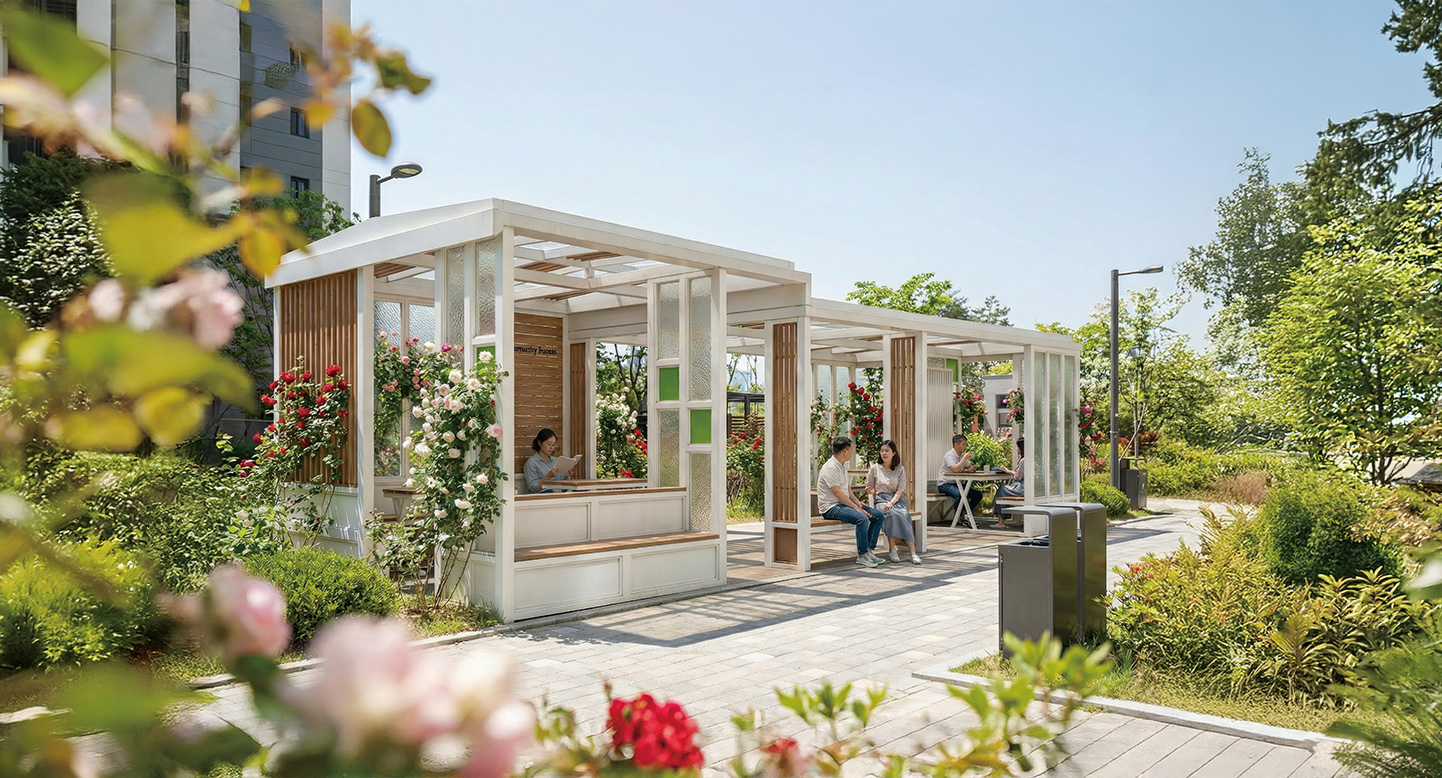 루미너스 티하우스( LUMINOUS TEA HOUSE )|DAUMP-756 제품목록으로 바로가기 자료 및 바로가기 나라장터 바로연결 도면 다운로드 시공사진 보러가기 기타 유럽의 고풍스러운 온실을 현대적으로 구현했습니다. 다채로운 질감의 유리를 통해 들어오는 빛이 공간을 아름답게 채우며, 비나 눈이 오는 날에도 낭만적인 분위기를 즐길 수 있는 쉼터입니다. 제품명 루미너스 티하우스( LUMINOUS TEA HOUSE )|DAUMP-756 물품식별번호 25530485 규격 10,000 X 4,000 X 3,100(H) 재질 stl, galvanized, al-casting, hard wood, polycarbonate 루미너스 티하우스( LUMINOUS TEA HOUSE )|DAUMP-756 물품식별번호 25530485 규격 10,000 X 4,000 X 3,100(H) 재질 stl, galvanized, al-casting, hard wood, polycarbonate 기타 유럽의 고풍스러운 온실을 현대적으로 구현했습니다. 다채로운 질감의 유리를 통해 들어오는 빛이 공간을 아름답게 채우며, 비나 눈이 오는 날에도 낭만적인 분위기를 즐길 수 있는 쉼터입니다. 자료 및 바로가기 나라장터 바로연결 도면 다운로드 시공사진 보러가기