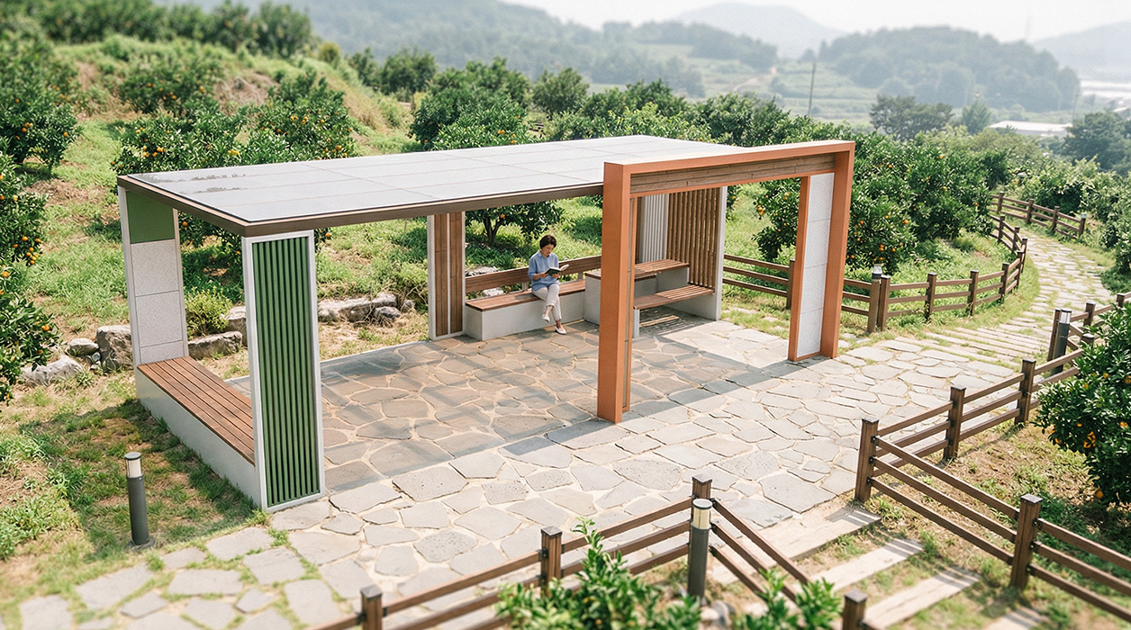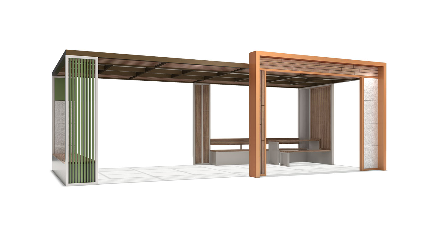 오렌지 스톤 테이블 홀 프라임 (ORANGE STONE TABLE HALL PRIME)|DAUMP-1739 제품목록으로 바로가기 자료 및 바로가기 나라장터 바로연결 도면 다운로드 시공사진 보러가기 기타 선명한 오렌지 프레임과 석재 패턴 포스트가 어우러져 현대적이고 웅장한 경관을 선사합니다. 루프 아래 독립된 테이블 세트와 긴 월 벤치를 조화롭게 배치하여, 단지 내 주요 광장에서 다수의 입주민이 함께 소통할 수 있는 프리미엄 복합 라운지를 제공합니다. 제품명 오렌지 스톤 테이블 홀 프라임 (ORANGE STONE TABLE HALL PRIME)|DAUMP-1739 물품식별번호 25530491 규격 8,000 X 3,800 X 2,850(H) 재질 stl, galvanized, hard wood, polycarbonate 오렌지 스톤 테이블 홀 프라임 (ORANGE STONE TABLE HALL PRIME)|DAUMP-1739 물품식별번호 25530491 규격 8,000 X 3,800 X 2,850(H) 재질 stl, galvanized, hard wood, polycarbonate 기타 선명한 오렌지 프레임과 석재 패턴 포스트가 어우러져 현대적이고 웅장한 경관을 선사합니다. 루프 아래 독립된 테이블 세트와 긴 월 벤치를 조화롭게 배치하여, 단지 내 주요 광장에서 다수의 입주민이 함께 소통할 수 있는 프리미엄 복합 라운지를 제공합니다. 자료 및 바로가기 나라장터 바로연결 도면 다운로드 시공사진 보러가기