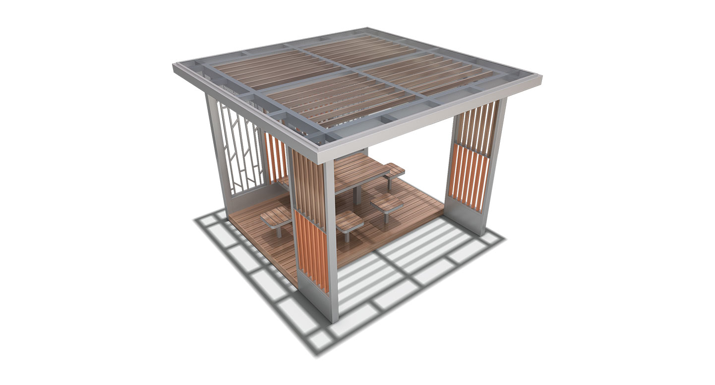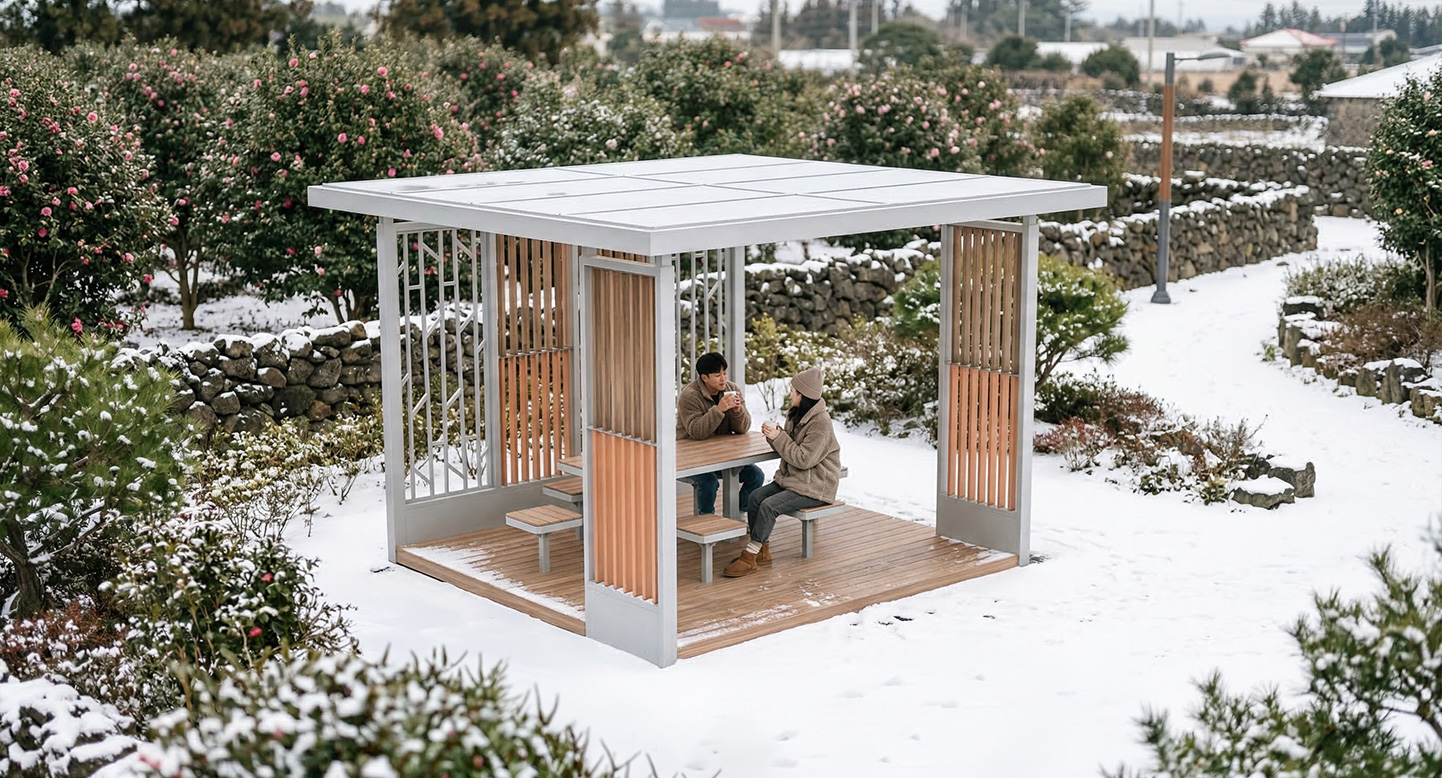 오렌지 루버 베이직(ORANGE LOUVER BASIC)|DAUM-P-175B-1 제품목록으로 바로가기 자료 및 바로가기 나라장터 바로연결 도면 다운로드 시공사진 보러가기 기타 청량한 화이트 프레임과 산뜻한 오렌지빛 우드 살대가 감각적으로 대비되는 디자인으로, 내부 평상과 테이블 세트가 일체형으로 구성되어 단지 내 휴식 공간에 안락한 체류성과 정제된 모던미를 동시에 더합니다. 제품명 오렌지 루버 베이직(ORANGE LOUVER BASIC)|DAUM-P-175B-1 물품식별번호 25031401 규격 3,600 X 3,600 X 2,625(H) 재질 stl, galvanized, hard wood, polycarbonate 오렌지 루버 베이직(ORANGE LOUVER BASIC)|DAUM-P-175B-1 물품식별번호 25031401 규격 3,600 X 3,600 X 2,625(H) 재질 stl, galvanized, hard wood, polycarbonate 기타 청량한 화이트 프레임과 산뜻한 오렌지빛 우드 살대가 감각적으로 대비되는 디자인으로, 내부 평상과 테이블 세트가 일체형으로 구성되어 단지 내 휴식 공간에 안락한 체류성과 정제된 모던미를 동시에 더합니다. 자료 및 바로가기 나라장터 바로연결 도면 다운로드 시공사진 보러가기