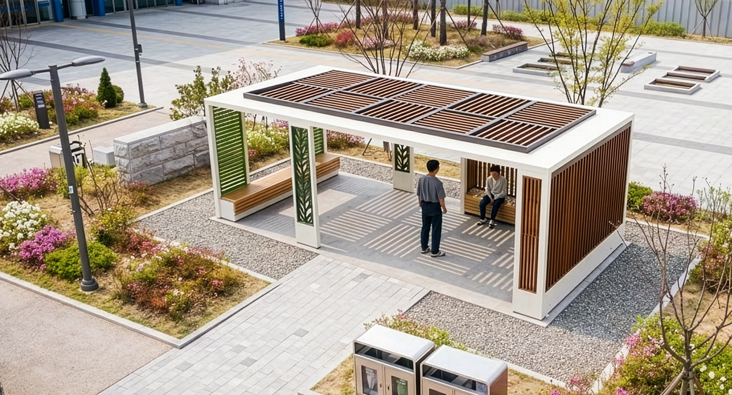 네이처 스크린 홀 프라임(NATURE SCREEN HALL PRIME)|DAUM-P-1708 제품목록으로 바로가기 자료 및 바로가기 나라장터 바로연결 도면 다운로드 시공사진 보러가기 기타 나뭇잎 패턴의 아트월과 그린 컬러 스크린이 조화를 이루어 자연 친화적인 도심 속 휴식처를 선사합니다. 와이드한 루프 아래 통합형 벤치를 배치하여 별도의 시설 없이도 다수가 함께 머물며 소통할 수 있는 프리미엄 복합 커뮤니티 공간을 제공합니다. 제품명 네이처 스크린 홀 프라임(NATURE SCREEN HALL PRIME)|DAUM-P-1708 물품식별번호 25022706 규격 7,500 X 3,600 X 2,700(H) 재질 stl, galvanized, hard wood, polycarbonate 네이처 스크린 홀 프라임(NATURE SCREEN HALL PRIME)|DAUM-P-1708 물품식별번호 25022706 규격 7,500 X 3,600 X 2,700(H) 재질 stl, galvanized, hard wood, polycarbonate 기타 나뭇잎 패턴의 아트월과 그린 컬러 스크린이 조화를 이루어 자연 친화적인 도심 속 휴식처를 선사합니다. 와이드한 루프 아래 통합형 벤치를 배치하여 별도의 시설 없이도 다수가 함께 머물며 소통할 수 있는 프리미엄 복합 커뮤니티 공간을 제공합니다. 자료 및 바로가기 나라장터 바로연결 도면 다운로드 시공사진 보러가기