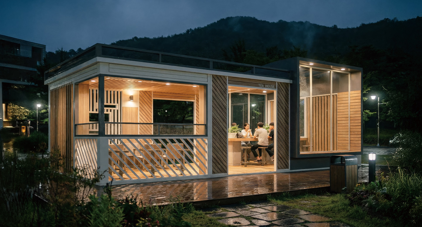 더 쉐브론 스위트-L(THE CHEVRON SUITE-L)|DAUM-P-765 제품목록으로 바로가기 자료 및 바로가기 나라장터 바로연결 도면 다운로드 시공사진 보러가기 기타 테라스 공간에 독립된 글라스 룸이 결합된 스위트 모델입니다. 사선형 우드 디자인의 아이덴티티를 유지하면서 실내 공간을 확보하여, 날씨에 구애받지 않고 더욱 아늑하고 프라이빗한 휴식을 제공합니다. 조명이 설치되어, 야간에도 분위기를 형성합니다. 제품명 더 쉐브론 스위트-L(THE CHEVRON SUITE-L)|DAUM-P-765 물품식별번호 24557328 규격 10,000 X 5,000 X 3,550(H) 재질 stl, galvanized, hard wood, polycarbonate, hpl 더 쉐브론 스위트-L(THE CHEVRON SUITE-L)|DAUM-P-765 물품식별번호 24557328 규격 10,000 X 5,000 X 3,550(H) 재질 stl, galvanized, hard wood, polycarbonate, hpl 기타 테라스 공간에 독립된 글라스 룸이 결합된 스위트 모델입니다. 사선형 우드 디자인의 아이덴티티를 유지하면서 실내 공간을 확보하여, 날씨에 구애받지 않고 더욱 아늑하고 프라이빗한 휴식을 제공합니다. 조명이 설치되어, 야간에도 분위기를 형성합니다. 자료 및 바로가기 나라장터 바로연결 도면 다운로드 시공사진 보러가기