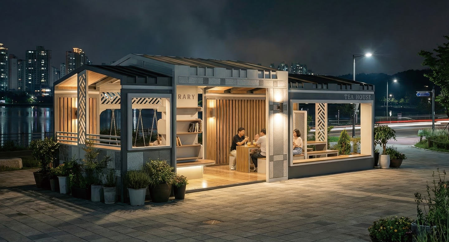 더 라이브러리 스위트-L (THE LIBRARY SUITE-L)|DAUM-P-760 제품목록으로 바로가기 자료 및 바로가기 나라장터 바로연결 도면 다운로드 시공사진 보러가기 기타 고급스러운 타일 마감과 그네 벤치, 그리고 서가 기능이 결합된 복합 문화 공간입니다. 온 가족이 함께 독서와 휴식을 즐길 수 있는 아늑한 ‘거실’ 같은 분위기를 야외 조경 공간에 그대로 구현했습니다. 조명이 설치되어, 야간에도 분위기를 형성합니다. 제품명 더 라이브러리 스위트-L (THE LIBRARY SUITE-L)|DAUM-P-760 물품식별번호 24557320 규격 9,000 X 4,000 X 3,300(H) 재질 stl, galvanized, al-casting, hard wood, polycarbonate, hpl 더 라이브러리 스위트-L (THE LIBRARY SUITE-L)|DAUM-P-760 물품식별번호 24557320 규격 9,000 X 4,000 X 3,300(H) 재질 stl, galvanized, al-casting, hard wood, polycarbonate, hpl 기타 고급스러운 타일 마감과 그네 벤치, 그리고 서가 기능이 결합된 복합 문화 공간입니다. 온 가족이 함께 독서와 휴식을 즐길 수 있는 아늑한 ‘거실’ 같은 분위기를 야외 조경 공간에 그대로 구현했습니다. 조명이 설치되어, 야간에도 분위기를 형성합니다. 자료 및 바로가기 나라장터 바로연결 도면 다운로드 시공사진 보러가기