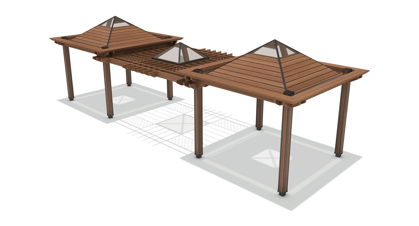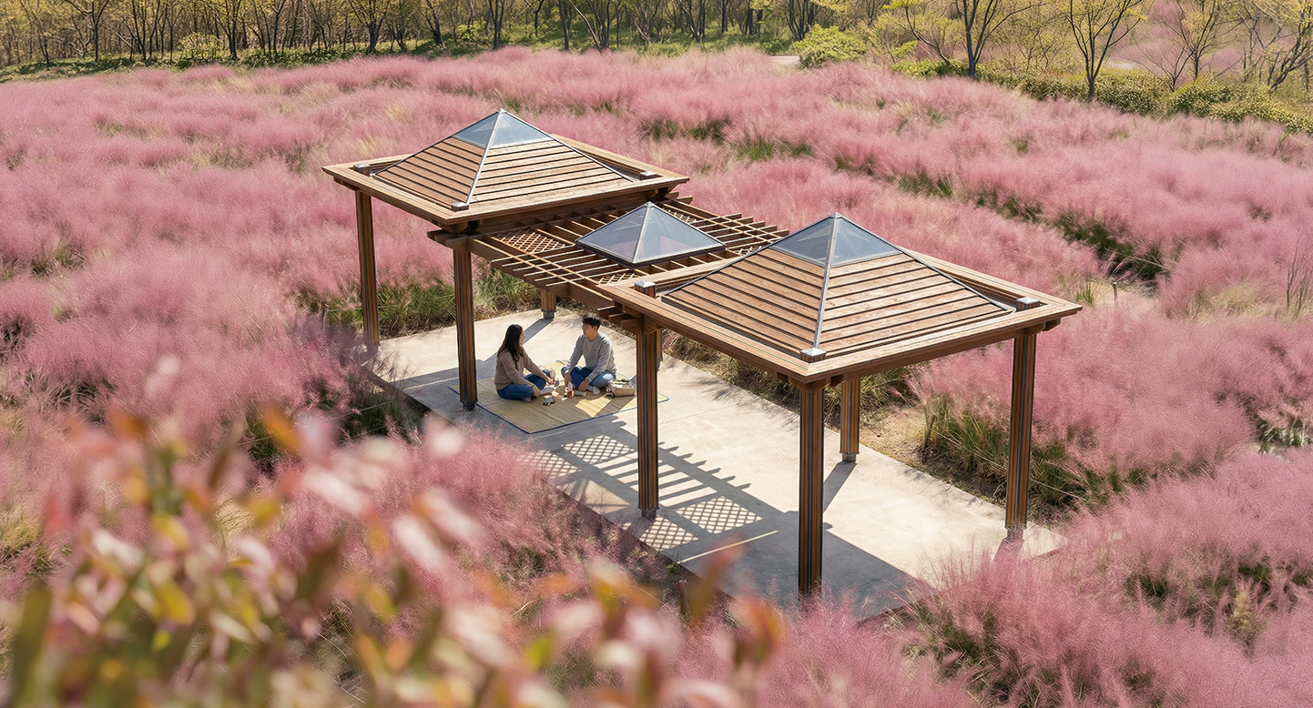 팀버 그랜드(TIMBER GRAND)|DAUM-P-409A 제품목록으로 바로가기 자료 및 바로가기 나라장터 바로연결 도면 다운로드 시공사진 보러가기 기타 하드우드의 묵직한 물성을 가장 잘 보여주는 웅장한(Grand) 스케일의 모델입니다. 넓게 뻗은 지붕과 견고한 구조가 압도적인 안정감을 주며, 대규모 단지의 메인 공간에 무게 중심을 잡아주는 랜드마크형 퍼걸러입니다. 제품명 팀버 그랜드(TIMBER GRAND)|DAUM-P-409A 물품식별번호 25029123 규격 10,940 X 4,000 X 3,530(H) 재질 stl, hard wood, galvanized, polycarbonate 팀버 그랜드(TIMBER GRAND)|DAUM-P-409A 물품식별번호 25029123 규격 10,940 X 4,000 X 3,530(H) 재질 stl, hard wood, galvanized, polycarbonate 기타 하드우드의 묵직한 물성을 가장 잘 보여주는 웅장한(Grand) 스케일의 모델입니다. 넓게 뻗은 지붕과 견고한 구조가 압도적인 안정감을 주며, 대규모 단지의 메인 공간에 무게 중심을 잡아주는 랜드마크형 퍼걸러입니다. 자료 및 바로가기 나라장터 바로연결 도면 다운로드 시공사진 보러가기