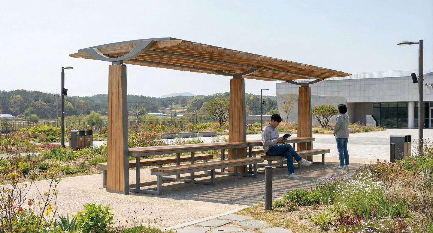 슬림 테이블 라인(SLIM TABLE LINE)|DAUM-P-402C-2 제품목록으로 바로가기 자료 및 바로가기 나라장터 바로연결 도면 다운로드 시공사진 보러가기 기타 중앙에 테이블을 배치하여 야외 업무나 독서, 티타임이 가능합니다. 도심 속 작은 야외 카페처럼 활용할 수 있는 실용적인 모델입니다. 제품명 슬림 테이블 라인(SLIM TABLE LINE)|DAUM-P-402C-2 물품식별번호 24164991 규격 6,900 X 2,600 X 2,640(H) 재질 stl, hard wood, galvanized, polycarbonate 슬림 테이블 라인(SLIM TABLE LINE)|DAUM-P-402C-2 물품식별번호 24164991 규격 6,900 X 2,600 X 2,640(H) 재질 stl, hard wood, galvanized, polycarbonate 기타 중앙에 테이블을 배치하여 야외 업무나 독서, 티타임이 가능합니다. 도심 속 작은 야외 카페처럼 활용할 수 있는 실용적인 모델입니다. 자료 및 바로가기 나라장터 바로연결 도면 다운로드 시공사진 보러가기