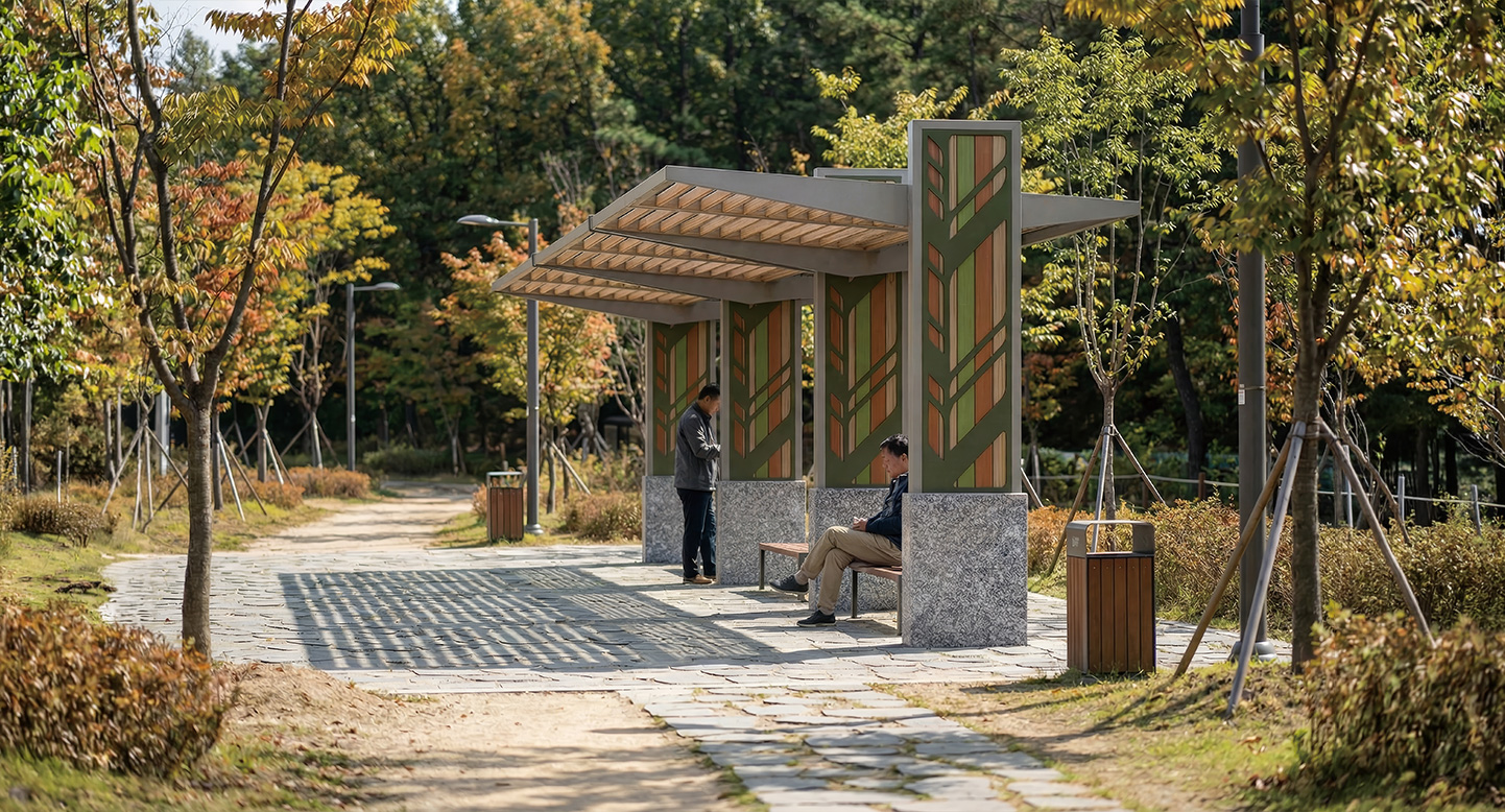 리프 와이드 라인(LEAF WIDE LINE)|DAUM-P-423A-3 제품목록으로 바로가기 자료 및 바로가기 나라장터 바로연결 도면 다운로드 시공사진 보러가기 기타 3칸으로 확장된 공간만큼 기둥의 나뭇잎 패턴이 반복되며 숲길을 걷는 듯한 분위기를 연출합니다. 자연주의 컨셉의 산책로에 추천합니다. 제품명 리프 와이드 라인(LEAF WIDE LINE)|DAUM-P-423A-3 물품식별번호 25029102 규격 10,300 X 2,600 X 2,900(H) 재질 stl, hard wood, polycarbonate, 화강석 리프 와이드 라인(LEAF WIDE LINE)|DAUM-P-423A-3 물품식별번호 25029102 규격 10,300 X 2,600 X 2,900(H) 재질 stl, hard wood, polycarbonate, 화강석 기타 3칸으로 확장된 공간만큼 기둥의 나뭇잎 패턴이 반복되며 숲길을 걷는 듯한 분위기를 연출합니다. 자연주의 컨셉의 산책로에 추천합니다. 자료 및 바로가기 나라장터 바로연결 도면 다운로드 시공사진 보러가기