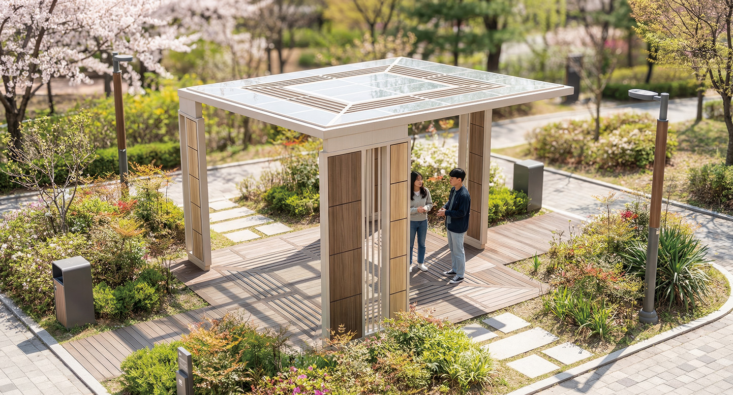 컬럼 라운지 베이직(COLUMN LOUNGE BASIC)|DAUM-P-2113 제품목록으로 바로가기 자료 및 바로가기 나라장터 바로연결 도면 다운로드 시공사진 보러가기 기타 세 개의 기둥이 사각 프레임을 안정적으로 지지하고 우드 컬러 포인트가 구조의 리듬을 더해, 단지와 산책로 흐름 속에서 자연스럽게 머무름을 유도하는 모던 소형 쉘터 공간입니다. 제품명 컬럼 라운지 베이직(COLUMN LOUNGE BASIC)|DAUM-P-2113 물품식별번호 25671834 규격 3,800 X 3,800 X2,800(H) 재질 stl, hard wood, galvanized, polycarbonate 컬럼 라운지 베이직(COLUMN LOUNGE BASIC)|DAUM-P-2113 물품식별번호 25671834 규격 3,800 X 3,800 X2,800(H) 재질 stl, hard wood, galvanized, polycarbonate 기타 세 개의 기둥이 사각 프레임을 안정적으로 지지하고 우드 컬러 포인트가 구조의 리듬을 더해, 단지와 산책로 흐름 속에서 자연스럽게 머무름을 유도하는 모던 소형 쉘터 공간입니다. 자료 및 바로가기 나라장터 바로연결 도면 다운로드 시공사진 보러가기