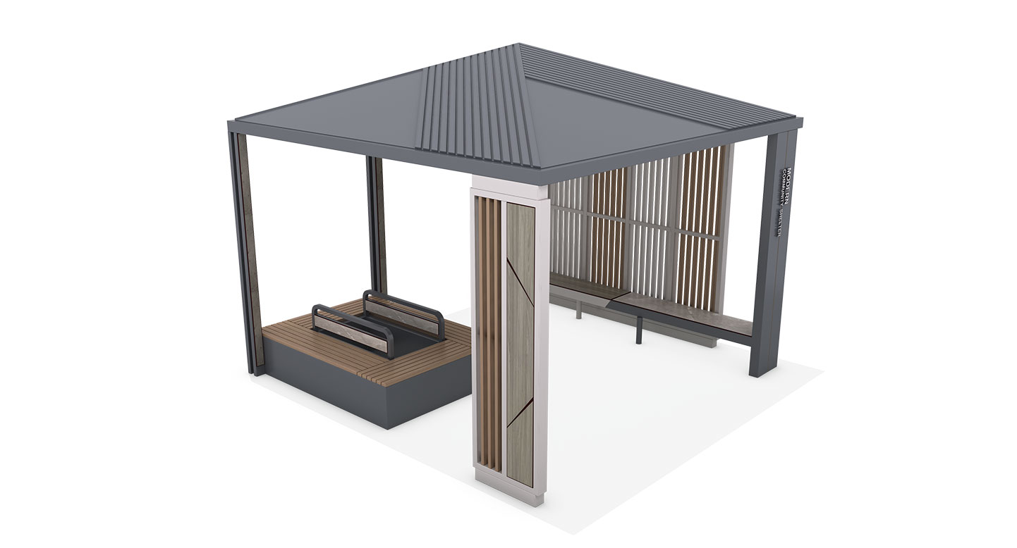 파빌리온 차콜 플러스(PAVILION CHARCOAL PLUS)|DAUM-P-2140 제품목록으로 바로가기 자료 및 바로가기 나라장터 바로연결 도면 다운로드 시공사진 보러가기 기타 피라미드형 지붕 아래 차콜 톤 프레임과 우드·대리석 패턴이 조화를 이루며, ㅁ자형 벤치와 일체형 테이블 구성으로 머무름과 소통을 안정적으로 수용하는 모던 복합 쉘터입니다. 제품명 파빌리온 차콜 플러스(PAVILION CHARCOAL PLUS)|DAUM-P-2140 물품식별번호 25939113 규격 3,800 X 3,800 x 3,190(H) 재질 stl, hard wood, galvanized, polycarbonate 파빌리온 차콜 플러스(PAVILION CHARCOAL PLUS)|DAUM-P-2140 물품식별번호 25939113 규격 3,800 X 3,800 x 3,190(H) 재질 stl, hard wood, galvanized, polycarbonate 기타 피라미드형 지붕 아래 차콜 톤 프레임과 우드·대리석 패턴이 조화를 이루며, ㅁ자형 벤치와 일체형 테이블 구성으로 머무름과 소통을 안정적으로 수용하는 모던 복합 쉘터입니다. 자료 및 바로가기 나라장터 바로연결 도면 다운로드 시공사진 보러가기