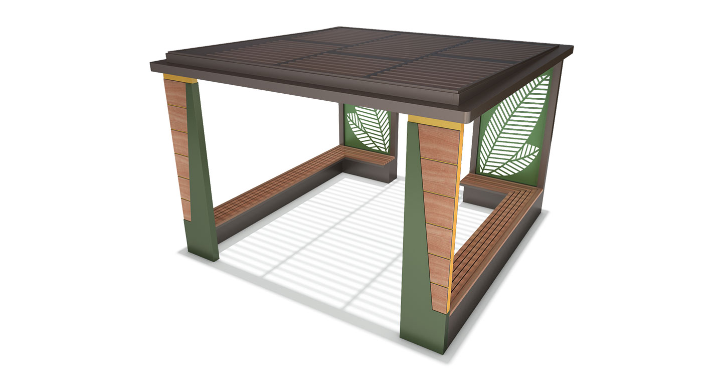 리프 가든 플러스(LEAF GARDEN PLUS)|DAUM-P-1132 제품목록으로 바로가기 자료 및 바로가기 나라장터 바로연결 도면 다운로드 시공사진 보러가기 기타 기둥 전면의 우드 패널과 그린 컬러의 사선 포인트가 조화를 이루어 자연 친화적이고 역동적인 미감을 선사합니다. 배면에 적용된 상징적인 나뭇잎 패턴 타공 스크린과 내부의 'ㄴ'자형 코너 벤치를 통해, 단지 내 공간에 싱그럽고 아늑한 프리미엄 숲속 쉼터를 제공합니다. 제품명 리프 가든 플러스(LEAF GARDEN PLUS)|DAUM-P-1132 물품식별번호 25018037 규격 4,000 X 4,000 X 2,600(H) 재질 stl, galvanized, hard wood, polycarbonate, hpl 리프 가든 플러스(LEAF GARDEN PLUS)|DAUM-P-1132 물품식별번호 25018037 규격 4,000 X 4,000 X 2,600(H) 재질 stl, galvanized, hard wood, polycarbonate, hpl 기타 기둥 전면의 우드 패널과 그린 컬러의 사선 포인트가 조화를 이루어 자연 친화적이고 역동적인 미감을 선사합니다. 배면에 적용된 상징적인 나뭇잎 패턴 타공 스크린과 내부의 'ㄴ'자형 코너 벤치를 통해, 단지 내 공간에 싱그럽고 아늑한 프리미엄 숲속 쉼터를 제공합니다. 자료 및 바로가기 나라장터 바로연결 도면 다운로드 시공사진 보러가기