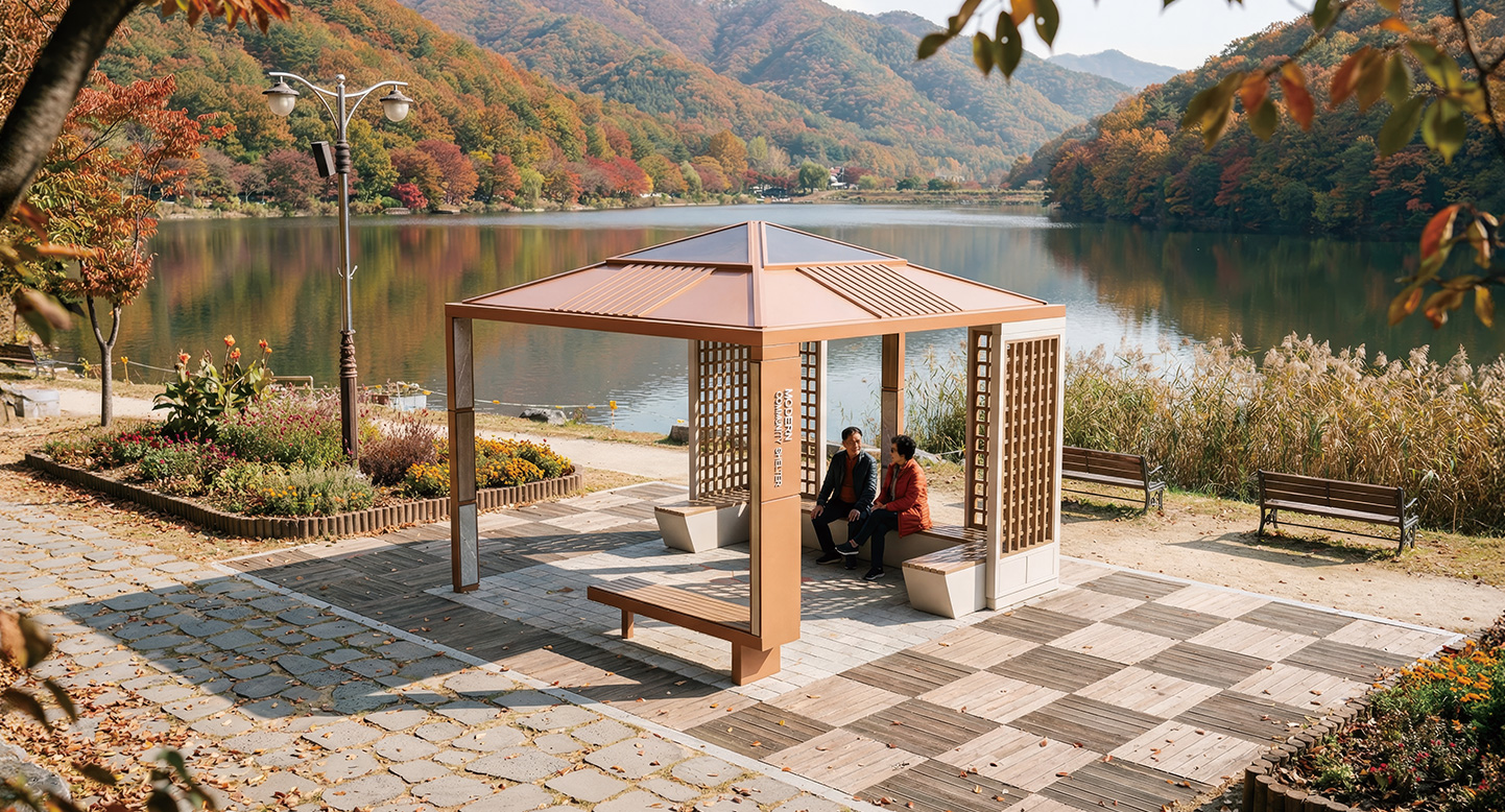 파빌리온 테라 플러스(PAVILION TERRA PLUS)|DAUM-P-2137 제품목록으로 바로가기 자료 및 바로가기 나라장터 바로연결 도면 다운로드 시공사진 보러가기 기타 웜톤 컬러의 피라미드형 지붕과 우드·대리석·격자 패턴이 어우러진 사각 소형 복합형으로, ㄷ자형 벤치 구성으로 단지와 공원에서 안정적인 체류형 휴식 공간을 제공합니다. 제품명 파빌리온 테라 플러스(PAVILION TERRA PLUS)|DAUM-P-2137 물품식별번호 25939110 규격 3,800 X 3,800 X 3,173(H) 재질 stl, hard wood, galvanized, polycarbonate 파빌리온 테라 플러스(PAVILION TERRA PLUS)|DAUM-P-2137 물품식별번호 25939110 규격 3,800 X 3,800 X 3,173(H) 재질 stl, hard wood, galvanized, polycarbonate 기타 웜톤 컬러의 피라미드형 지붕과 우드·대리석·격자 패턴이 어우러진 사각 소형 복합형으로, ㄷ자형 벤치 구성으로 단지와 공원에서 안정적인 체류형 휴식 공간을 제공합니다. 자료 및 바로가기 나라장터 바로연결 도면 다운로드 시공사진 보러가기
