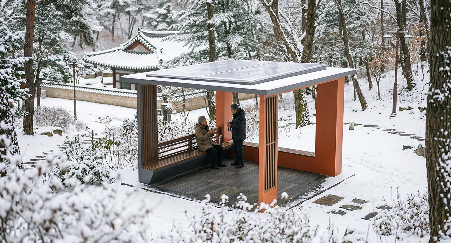 오렌지 게이트 플러스(ORANGE GATE PLUS)|DAUM-P-1135 제품목록으로 바로가기 자료 및 바로가기 나라장터 바로연결 도면 다운로드 시공사진 보러가기 기타 선명한 오렌지 컬러의 와이드 프레임 게이트가 공간에 강렬한 포인트와 활력을 부여합니다. 정갈한 다크 그레이 루프와 기둥의 슬림 루버 포인트, 그리고 내부의 일체형 등받이 벤치를 결합하여 단지 내 공간에 세련되고 안락한 프리미엄 휴식처를 제공합니다. 제품명 오렌지 게이트 플러스(ORANGE GATE PLUS)|DAUM-P-1135 물품식별번호 25018040 규격 4,000 X 4,000 X 2,700(H) 재질 stl, galvanized, hard wood, polycarbonate, hpl 오렌지 게이트 플러스(ORANGE GATE PLUS)|DAUM-P-1135 물품식별번호 25018040 규격 4,000 X 4,000 X 2,700(H) 재질 stl, galvanized, hard wood, polycarbonate, hpl 기타 선명한 오렌지 컬러의 와이드 프레임 게이트가 공간에 강렬한 포인트와 활력을 부여합니다. 정갈한 다크 그레이 루프와 기둥의 슬림 루버 포인트, 그리고 내부의 일체형 등받이 벤치를 결합하여 단지 내 공간에 세련되고 안락한 프리미엄 휴식처를 제공합니다. 자료 및 바로가기 나라장터 바로연결 도면 다운로드 시공사진 보러가기
