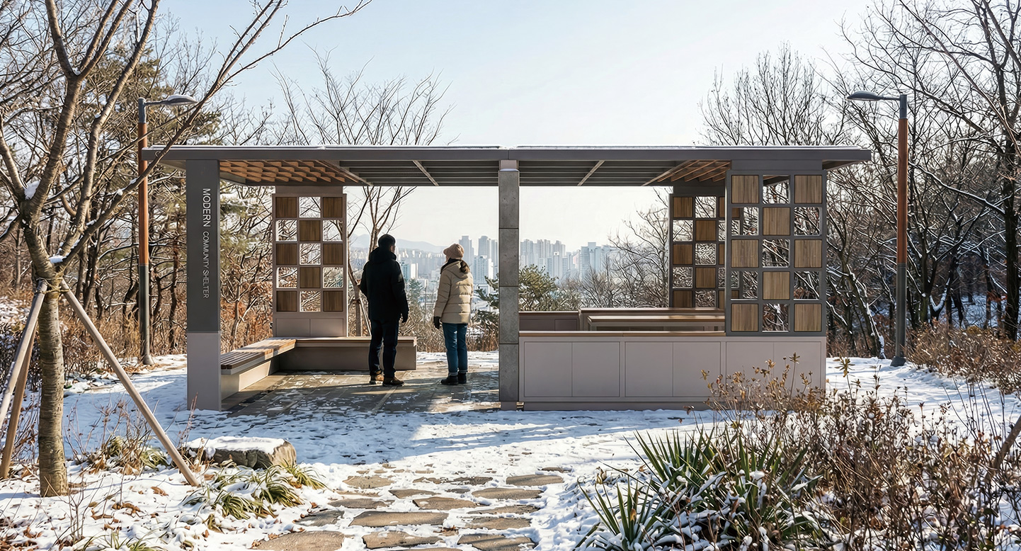 체커드우드 홀 프라임(CHECKERED-WOOD HALL PRIME)|DAUM-P-2732 제품목록으로 바로가기 자료 및 바로가기 나라장터 바로연결 도면 다운로드 시공사진 보러가기 기타 목재와 빈 공간이 교차하는 체크 패턴의 파티션이 경쾌한 리듬감을 선사합니다. 콘크리트 질감의 테이블과 어우러져 현대적인 조형미를 강조하며, 트렌디한 감각의 휴게 공간이 필요한 젊은 감성의 거리나 신도시 공원에 완벽하게 매칭됩니다. 제품명 체커드우드 홀 프라임(CHECKERED-WOOD HALL PRIME)|DAUM-P-2732 물품식별번호 25939130 규격 7,000 × 3,600 × 2,600(H) 재질 stl, galvanized, hard wood, polycarbonate, hpl 체커드우드 홀 프라임(CHECKERED-WOOD HALL PRIME)|DAUM-P-2732 물품식별번호 25939130 규격 7,000 × 3,600 × 2,600(H) 재질 stl, galvanized, hard wood, polycarbonate, hpl 기타 목재와 빈 공간이 교차하는 체크 패턴의 파티션이 경쾌한 리듬감을 선사합니다. 콘크리트 질감의 테이블과 어우러져 현대적인 조형미를 강조하며, 트렌디한 감각의 휴게 공간이 필요한 젊은 감성의 거리나 신도시 공원에 완벽하게 매칭됩니다. 자료 및 바로가기 나라장터 바로연결 도면 다운로드 시공사진 보러가기