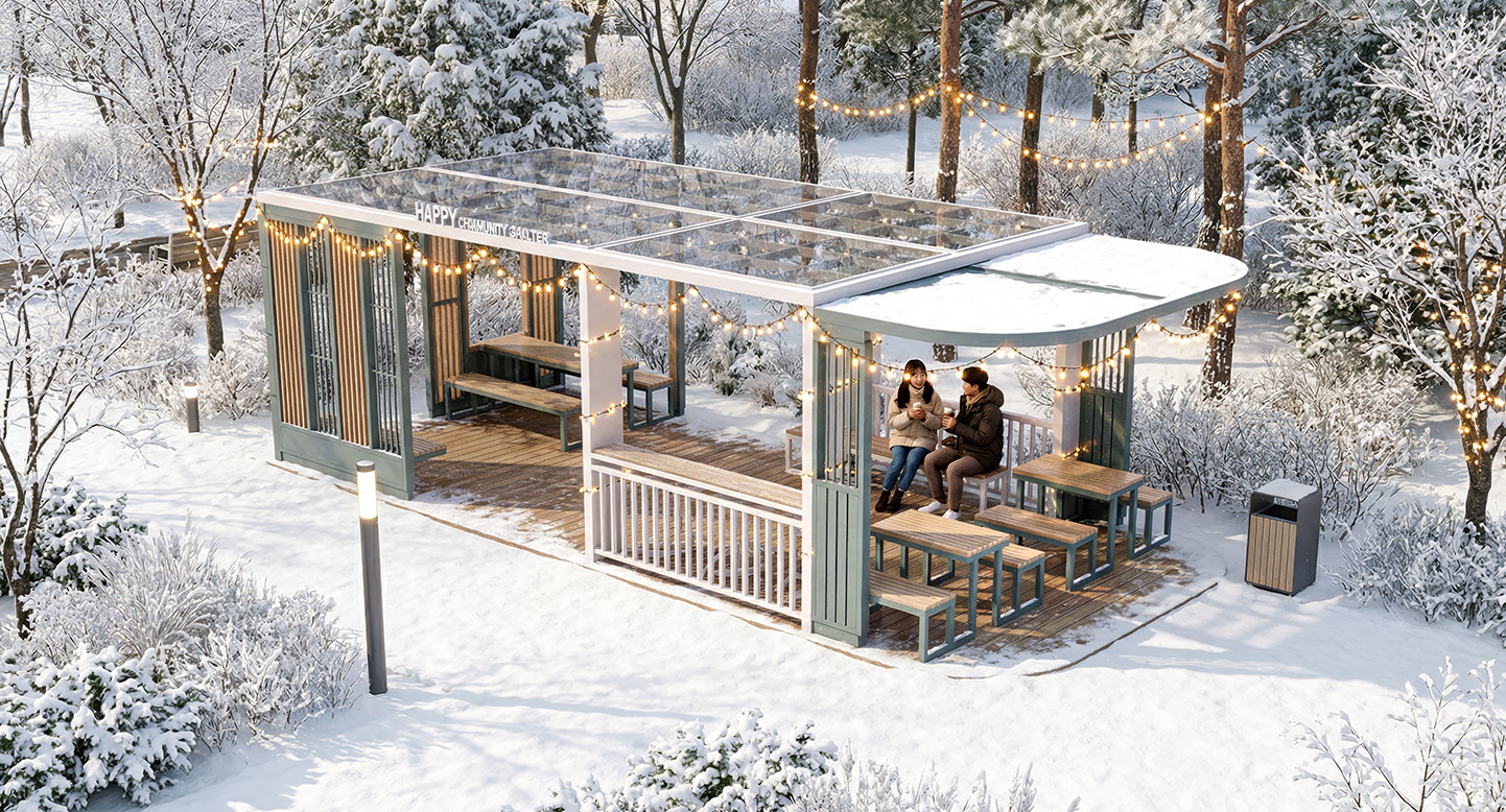 마블스퀘어 홀 프라임(MARBLE-SQUARE HALL PRIME)|DAUM-P-2728 제품목록으로 바로가기 자료 및 바로가기 나라장터 바로연결 도면 다운로드 시공사진 보러가기 기타 네이비와 크림 컬러의 조화 속에 사각 프레임 디테일과 고급 석재 마감이 돋보이는 모델입니다. 클래식한 분위기의 벽체와 개방형 지붕이 어우러져, 아파트 조경 내에서 고즈넉한 티타임을 즐기는 품격 있는 휴게 공간을 제공합니다. 제품명 마블스퀘어 홀 프라임(MARBLE-SQUARE HALL PRIME)|DAUM-P-2728 물품식별번호 25939127 규격 7,000 × 4,000 × 2,800(H) 재질 stl, galvanized, hard wood, polycarbonate, hpl 마블스퀘어 홀 프라임(MARBLE-SQUARE HALL PRIME)|DAUM-P-2728 물품식별번호 25939127 규격 7,000 × 4,000 × 2,800(H) 재질 stl, galvanized, hard wood, polycarbonate, hpl 기타 네이비와 크림 컬러의 조화 속에 사각 프레임 디테일과 고급 석재 마감이 돋보이는 모델입니다. 클래식한 분위기의 벽체와 개방형 지붕이 어우러져, 아파트 조경 내에서 고즈넉한 티타임을 즐기는 품격 있는 휴게 공간을 제공합니다. 자료 및 바로가기 나라장터 바로연결 도면 다운로드 시공사진 보러가기