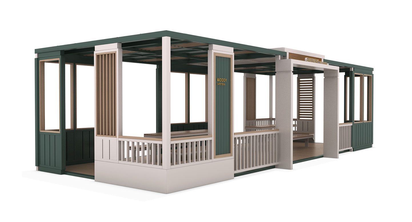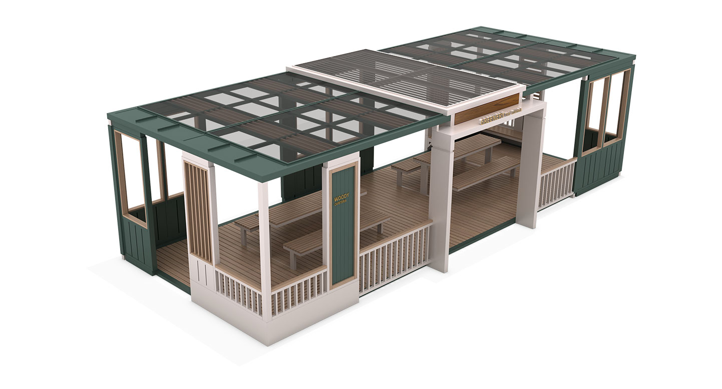 그리너리라운지 홀 프라임(GREENERY-LOUNGE HALL PRIME)|DAUM-P-2722 제품목록으로 바로가기 자료 및 바로가기 나라장터 바로연결 도면 다운로드 시공사진 보러가기 기타 깊이감 있는 딥 그린과 화이트 프레임이 조화를 이룬 클래식한 티하우스 디자인입니다. 웨인스코팅 스타일의 벽체와 개방형 창이 이국적인 정취를 자아내며, 단지 내 정원에서 차 한 잔의 여유를 즐기는 고품격 휴게 공간을 제공합니다. 제품명 그리너리라운지 홀 프라임(GREENERY-LOUNGE HALL PRIME)|DAUM-P-2722 물품식별번호 25939122 규격 10,000 × 4,300 × 2,770(H) 재질 stl, galvanized, hard wood, polycarbonate, hpl 그리너리라운지 홀 프라임(GREENERY-LOUNGE HALL PRIME)|DAUM-P-2722 물품식별번호 25939122 규격 10,000 × 4,300 × 2,770(H) 재질 stl, galvanized, hard wood, polycarbonate, hpl 기타 깊이감 있는 딥 그린과 화이트 프레임이 조화를 이룬 클래식한 티하우스 디자인입니다. 웨인스코팅 스타일의 벽체와 개방형 창이 이국적인 정취를 자아내며, 단지 내 정원에서 차 한 잔의 여유를 즐기는 고품격 휴게 공간을 제공합니다. 자료 및 바로가기 나라장터 바로연결 도면 다운로드 시공사진 보러가기