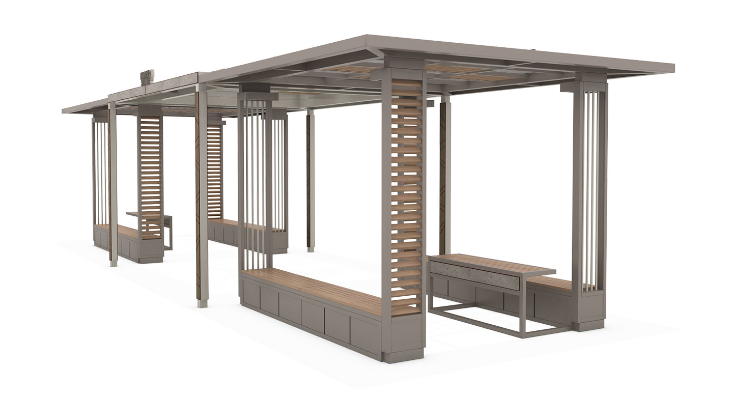 탑레이어 홀 프라임(TOP-LAYER HALL PRIME)|DAUM-P-2714 제품목록으로 바로가기 자료 및 바로가기 나라장터 바로연결 도면 다운로드 시공사진 보러가기 기타 중앙부가 살짝 솟아오른 입체적인 지붕 형상이 쾌적한 개방감과 자연스러운 통기성을 유도하며, 하부의 간결한 목재 벤치가 어우러져 도심 속 소공원이나 아파트 단지 내 광장에서 누구나 편안하게 머무는 모던한 쉼터를 완성합니다. 제품명 탑레이어 홀 프라임(TOP-LAYER HALL PRIME)|DAUM-P-2714 물품식별번호 25939114 규격 12,500 × 4,000 × 2,850(H) 재질 stl, galvanized, hard wood, polycarbonate, hpl 탑레이어 홀 프라임(TOP-LAYER HALL PRIME)|DAUM-P-2714 물품식별번호 25939114 규격 12,500 × 4,000 × 2,850(H) 재질 stl, galvanized, hard wood, polycarbonate, hpl 기타 중앙부가 살짝 솟아오른 입체적인 지붕 형상이 쾌적한 개방감과 자연스러운 통기성을 유도하며, 하부의 간결한 목재 벤치가 어우러져 도심 속 소공원이나 아파트 단지 내 광장에서 누구나 편안하게 머무는 모던한 쉼터를 완성합니다. 자료 및 바로가기 나라장터 바로연결 도면 다운로드 시공사진 보러가기