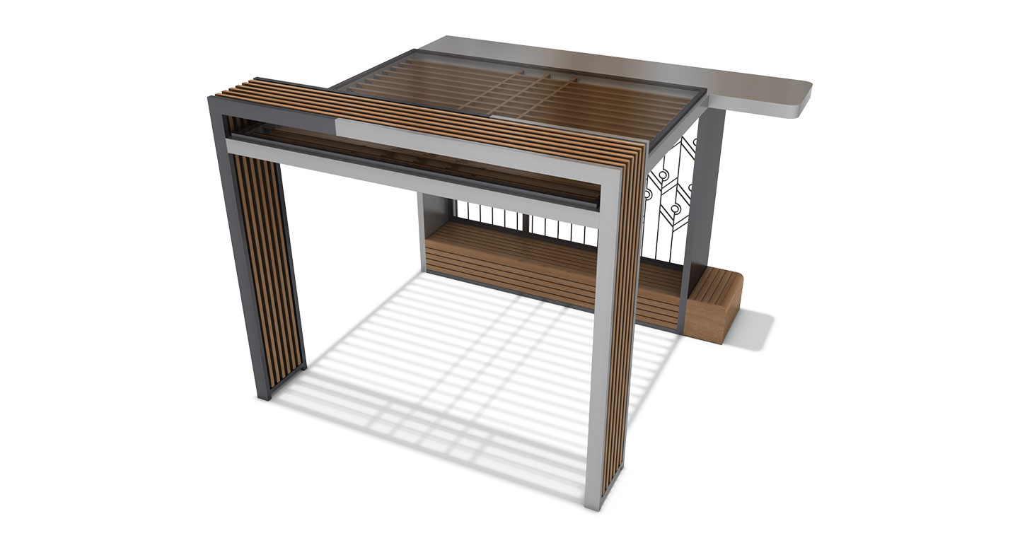 업라이트 에지 베이직(UPRIGHT EDGE BASIC)|DAUM-P-108A 제품목록으로 바로가기 자료 및 바로가기 나라장터 바로연결 도면 다운로드 시공사진 보러가기 기타 상부로 솟아오른 사선형 기둥이 구조를 역동적으로 감싸는 사각 소형 기본형으로, 짙은 그레이 프레임과 정교한 우드 디테일이 결합되어 단지 내 휴식 공간에 독창적이면서도 세련된 건축적 포인트를 더합니다. 제품명 업라이트 에지 베이직(UPRIGHT EDGE BASIC)|DAUM-P-108A 물품식별번호 25025015 규격 4,100 X 3,600 X 3,100(H) 재질 stl, galvanized, hard wood, polycarbonate 업라이트 에지 베이직(UPRIGHT EDGE BASIC)|DAUM-P-108A 물품식별번호 25025015 규격 4,100 X 3,600 X 3,100(H) 재질 stl, galvanized, hard wood, polycarbonate 기타 상부로 솟아오른 사선형 기둥이 구조를 역동적으로 감싸는 사각 소형 기본형으로, 짙은 그레이 프레임과 정교한 우드 디테일이 결합되어 단지 내 휴식 공간에 독창적이면서도 세련된 건축적 포인트를 더합니다. 자료 및 바로가기 나라장터 바로연결 도면 다운로드 시공사진 보러가기