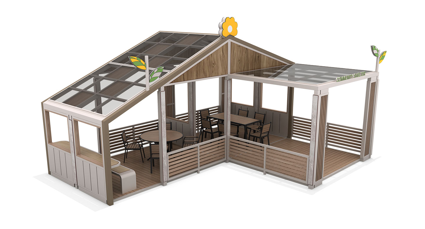 블라썸 티하우스( BLOSSOM TEA HOUSE)|DAUM-P-2751 제품목록으로 바로가기 자료 및 바로가기 나라장터 바로연결 도면 다운로드 시공사진 보러가기 기타 지붕 위의 꽃과 나뭇잎 장식이 동화 속의 아기자기한 집을 연상시킵니다. 아이들의 상상력을 자극하는 디자인과 부모님을 위한 편안한 휴식 공간이 결합되어, 온 가족이 웃음꽃을 피우는 행복한 패밀리 커뮤니티 공간입니다. 제품명 블라썸 티하우스( BLOSSOM TEA HOUSE)|DAUM-P-2751 물품식별번호 25939642 규격 7,000 × 5,500 × 4,190(H) 재질 stl, galvanized, hard wood, polycarbonate, hpl 블라썸 티하우스( BLOSSOM TEA HOUSE)|DAUM-P-2751 물품식별번호 25939642 규격 7,000 × 5,500 × 4,190(H) 재질 stl, galvanized, hard wood, polycarbonate, hpl 기타 지붕 위의 꽃과 나뭇잎 장식이 동화 속의 아기자기한 집을 연상시킵니다. 아이들의 상상력을 자극하는 디자인과 부모님을 위한 편안한 휴식 공간이 결합되어, 온 가족이 웃음꽃을 피우는 행복한 패밀리 커뮤니티 공간입니다. 자료 및 바로가기 나라장터 바로연결 도면 다운로드 시공사진 보러가기