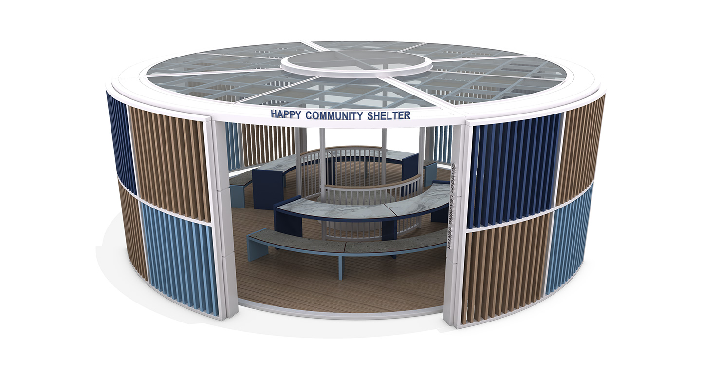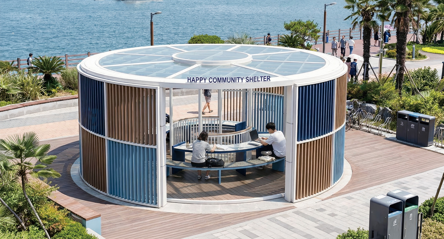 라인 갤러리 아고라(LINE GALLERY AGORA)|DAUM-P-2767 제품목록으로 바로가기 자료 및 바로가기 나라장터 바로연결 도면 다운로드 시공사진 보러가기 기타 블루와 브라운 톤의 수직 루버가 외벽을 감싸 안정감을 부여합니다. 원형 지붕 아래 동심원 형태로 배치된 테이블은 밀도 높은 토론과 협력 학습을 지원합니다. 제품명 라인 갤러리 아고라(LINE GALLERY AGORA)|DAUM-P-2767 물품식별번호 25939659 규격 8,000 × 8,000 × 3,000(H) 재질 stl, galvanized, hard wood, polycarbonate, hpl 라인 갤러리 아고라(LINE GALLERY AGORA)|DAUM-P-2767 물품식별번호 25939659 규격 8,000 × 8,000 × 3,000(H) 재질 stl, galvanized, hard wood, polycarbonate, hpl 기타 블루와 브라운 톤의 수직 루버가 외벽을 감싸 안정감을 부여합니다. 원형 지붕 아래 동심원 형태로 배치된 테이블은 밀도 높은 토론과 협력 학습을 지원합니다. 자료 및 바로가기 나라장터 바로연결 도면 다운로드 시공사진 보러가기