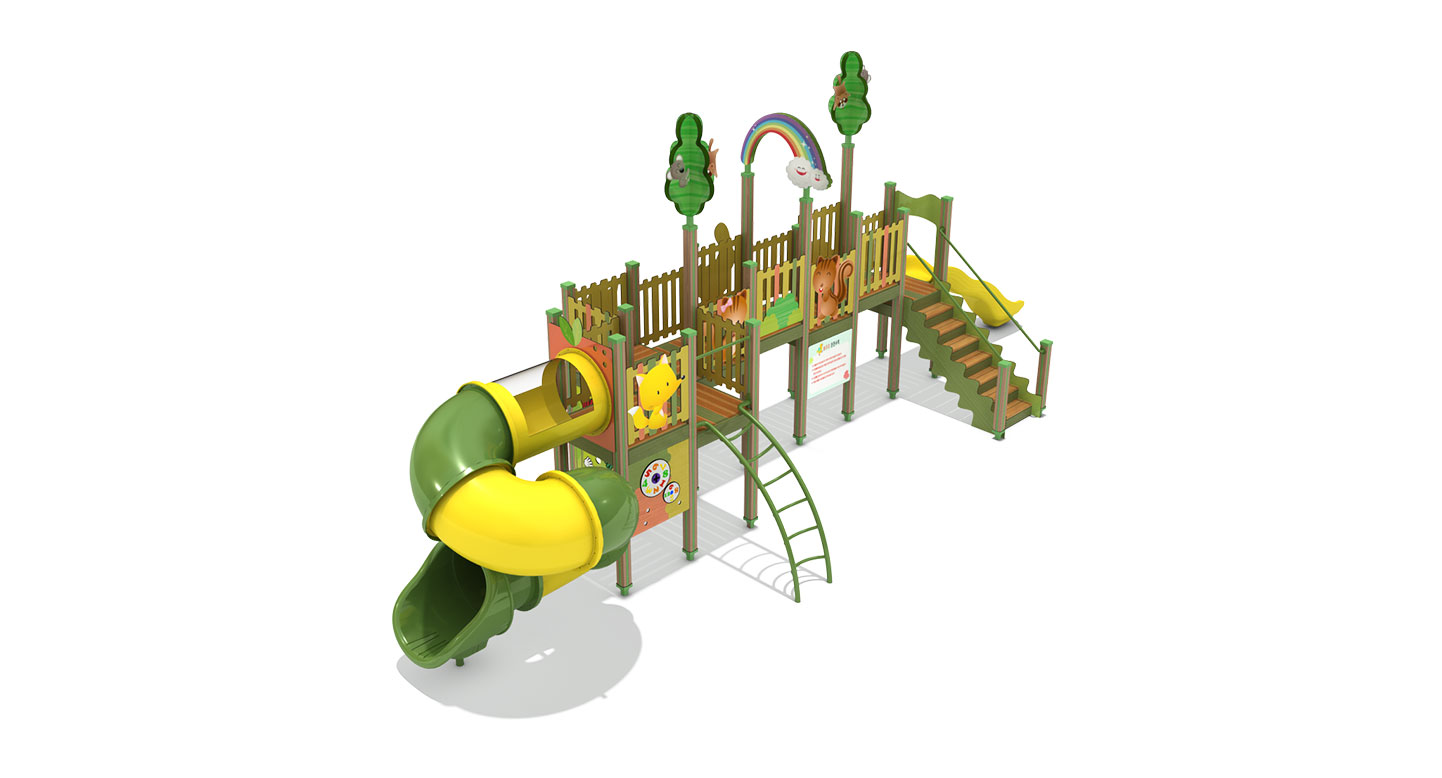 스카이 버드 레인보우 숲(스카이 버드 레인보우 숲)|DAPG-001-10 제품목록으로 바로가기 자료 및 바로가기 나라장터 바로연결 도면 다운로드 시공사진 보러가기 기타 하늘과 맞닿은 숲속마을을 테마로 했습니다. 귀여운 다람쥐와 나뭇잎 그래픽, 무지개 장식이 어우러져 마치 숲속 동화나라에 온듯한 감성을 자극하며, 자연친화적인 분위기 속에서 편안한 놀이를 즐길 수 있습니다. 제품명 스카이 버드 레인보우 숲(스카이 버드 레인보우 숲)|DAPG-001-10 물품식별번호 25289182|안전인증번호 : CA023H10020-3022 규격 10,787×3,000×4,600(H) 재질 stl, hpl, pe, hard wood 스카이 버드 레인보우 숲(스카이 버드 레인보우 숲)|DAPG-001-10 물품식별번호 25289182|안전인증번호 : CA023H10020-3022 규격 10,787×3,000×4,600(H) 재질 stl, hpl, pe, hard wood 기타 하늘과 맞닿은 숲속마을을 테마로 했습니다. 귀여운 다람쥐와 나뭇잎 그래픽, 무지개 장식이 어우러져 마치 숲속 동화나라에 온듯한 감성을 자극하며, 자연친화적인 분위기 속에서 편안한 놀이를 즐길 수 있습니다. 자료 및 바로가기 나라장터 바로연결 도면 다운로드 시공사진 보러가기