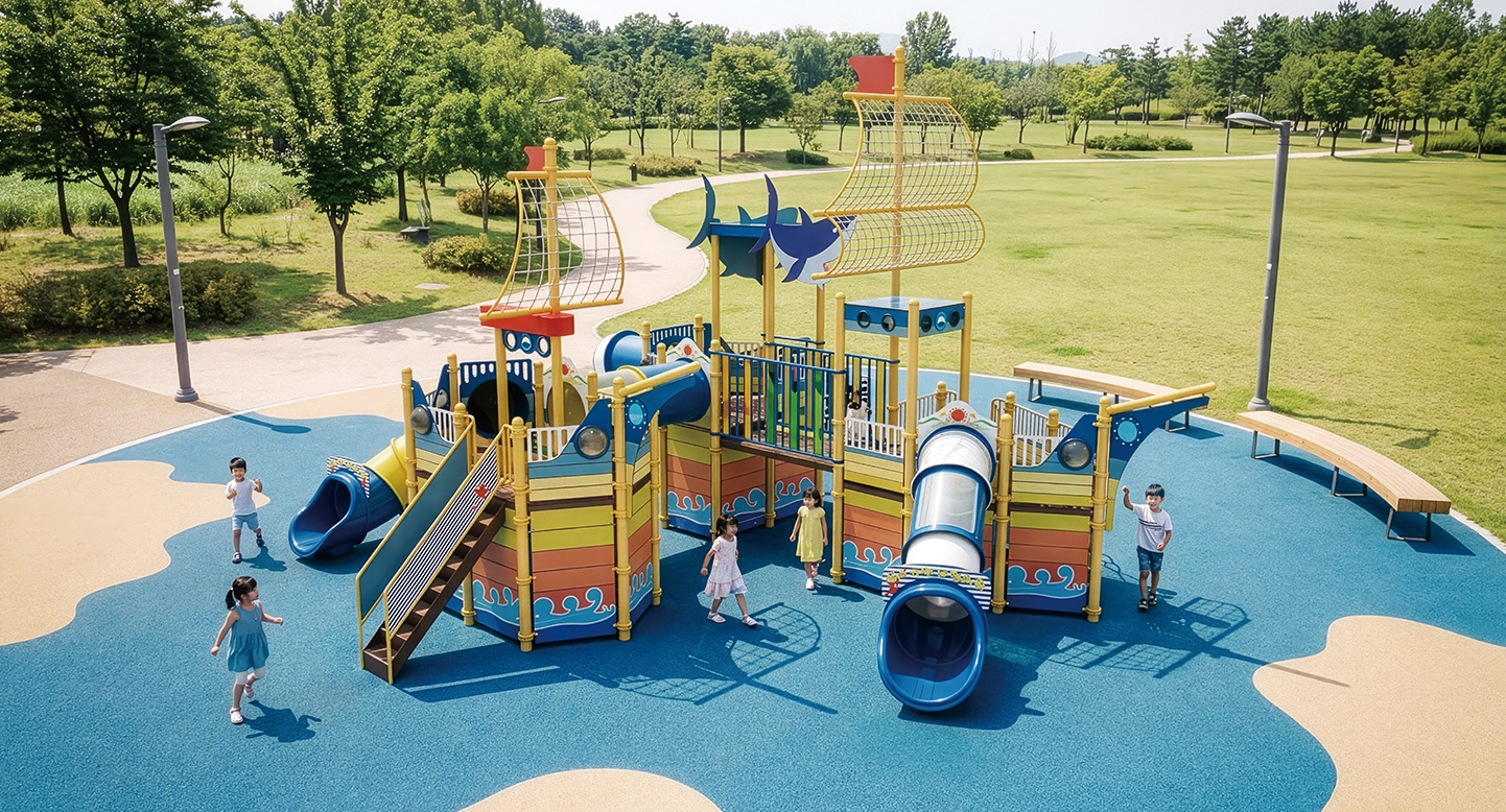 샤크 오션 그랜드 크루즈(Shark Ocean Grand Cruise)|DAUM-PG-106 제품목록으로 바로가기 자료 및 바로가기 나라장터 바로연결 도면 다운로드 시공사진 보러가기 기타 거대한 상어 친구와 떠나는 바다 여행을 테마로, 두 개의 선체가 구름다리로 연결된 웅장한 크루즈를 구현했습니다. 넘실거리는 파도 그래픽과 높이 솟은 돛대가 모험심을 자극하며, 대형 튜브 슬라이드와 입체적인 동선을 통해 아이들이 선장이 되어 바다를 경험을 선사합니다. 제품명 샤크 오션 그랜드 크루즈(Shark Ocean Grand Cruise)|DAUM-PG-106 물품식별번호 23442848|안전인증번호 : CA023H093-8039A 규격 10,090×9.245×6,170(H) 재질 stl, hpl, hard wood 샤크 오션 그랜드 크루즈(Shark Ocean Grand Cruise)|DAUM-PG-106 물품식별번호 23442848|안전인증번호 : CA023H093-8039A 규격 10,090×9.245×6,170(H) 재질 stl, hpl, hard wood 기타 거대한 상어 친구와 떠나는 바다 여행을 테마로, 두 개의 선체가 구름다리로 연결된 웅장한 크루즈를 구현했습니다. 넘실거리는 파도 그래픽과 높이 솟은 돛대가 모험심을 자극하며, 대형 튜브 슬라이드와 입체적인 동선을 통해 아이들이 선장이 되어 바다를 경험을 선사합니다. 자료 및 바로가기 나라장터 바로연결 도면 다운로드 시공사진 보러가기