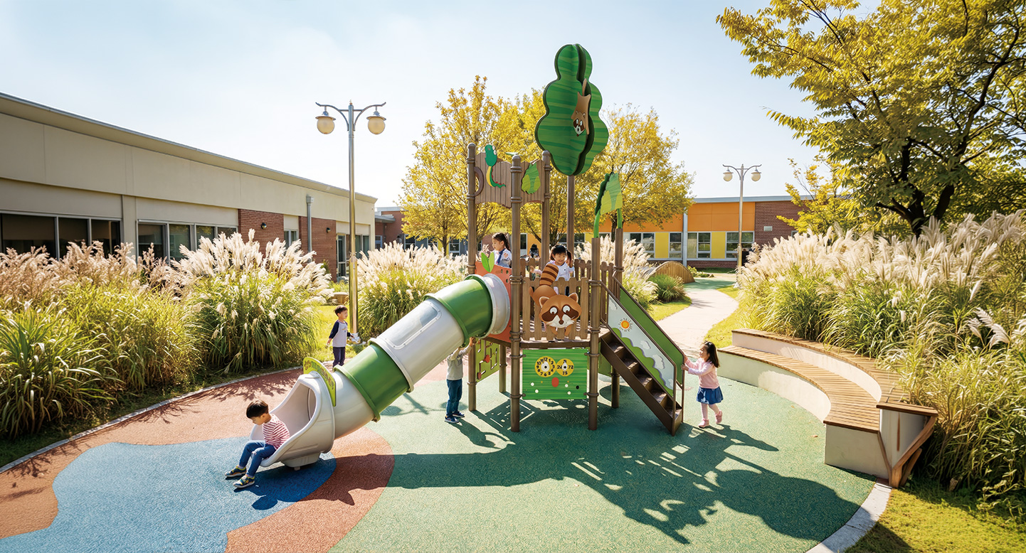 레인보우 포레스트 아지트(RainbowForestHideout)|DAUM-PG-105-2 제품목록으로 바로가기 자료 및 바로가기 나라장터 바로연결 도면 다운로드 시공사진 보러가기 기타 숲속 동물테마로 디자인했습니다. 따뜻한 우드 톤의 기둥이 포근함을 주며, 다채로운 놀이 기구를 통해 아이들이 친구들과 함께 뛰어놀며 튼튼한 체력과 사회성을 기를 수 있는 아늑한 모델입니다. 제품명 레인보우 포레스트 아지트(RainbowForestHideout)|DAUM-PG-105-2 물품식별번호 23395960|안전인증번호 : CA023H093-8037A 규격 5,750 X 3,240 X 5,200(H) 재질 sts, stl, hpl, pe 레인보우 포레스트 아지트(RainbowForestHideout)|DAUM-PG-105-2 물품식별번호 23395960|안전인증번호 : CA023H093-8037A 규격 5,750 X 3,240 X 5,200(H) 재질 sts, stl, hpl, pe 기타 숲속 동물테마로 디자인했습니다. 따뜻한 우드 톤의 기둥이 포근함을 주며, 다채로운 놀이 기구를 통해 아이들이 친구들과 함께 뛰어놀며 튼튼한 체력과 사회성을 기를 수 있는 아늑한 모델입니다. 자료 및 바로가기 나라장터 바로연결 도면 다운로드 시공사진 보러가기