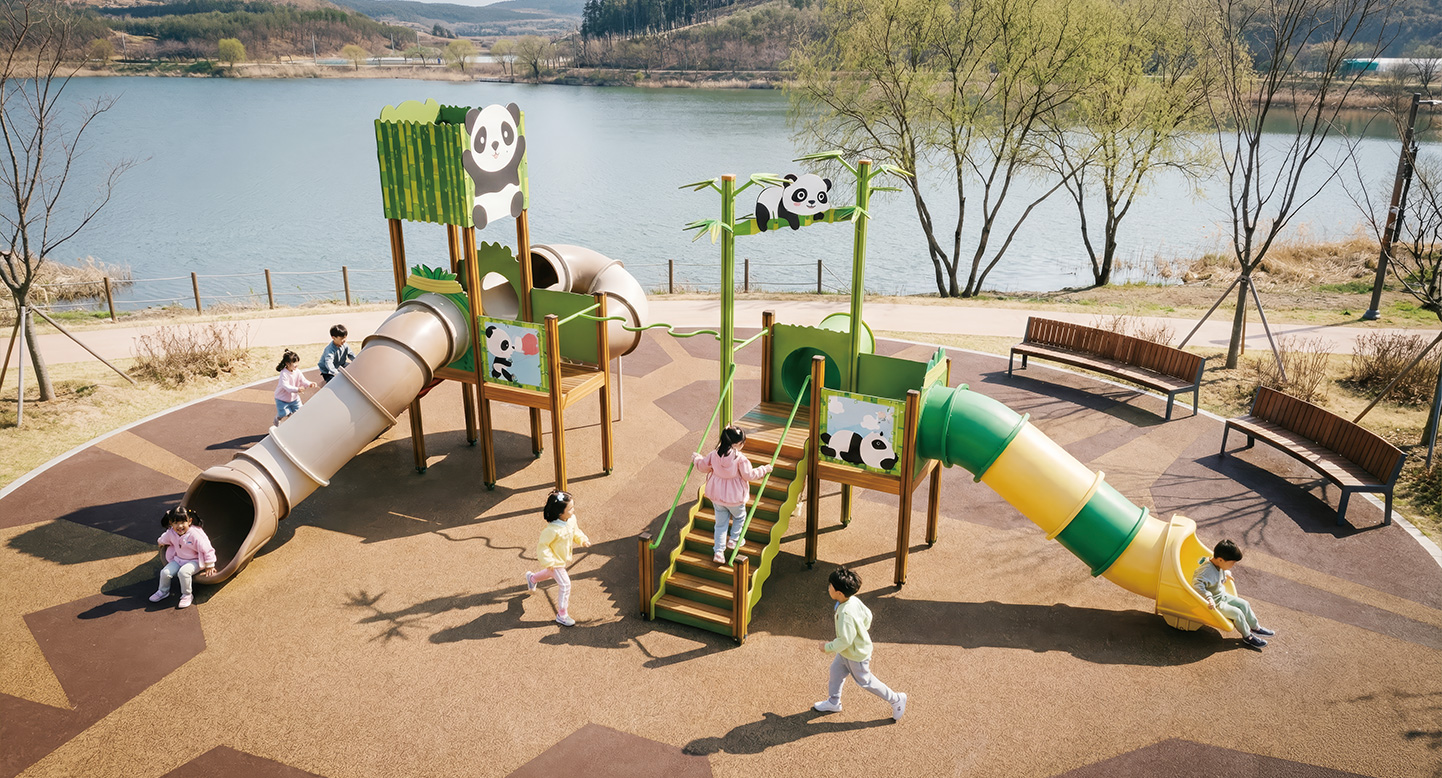판다 뱀부 트윈 타워(PandaBambooTwin Tower)|DAPG-012-5 제품목록으로 바로가기 자료 및 바로가기 나라장터 바로연결 도면 다운로드 시공사진 보러가기 기타 타워가 브리지로 연결된 형태입니다. 친구와 양쪽에서 동시에 출발하여 만나는 재미가 있으며, 서로 다른 종류의 슬라이드를 골라 타는 즐거움이 가득하여 아이들의 협동심과 사회성을 길러주는 놀이시설입니다. 제품명 판다 뱀부 트윈 타워(PandaBambooTwin Tower)|DAPG-012-5 물품식별번호 25289203|안전인증번호 : CA023H10020-3025 규격 11,042×7,389×4,390(H) 재질 stl, hpl, pe, hard wood 판다 뱀부 트윈 타워(PandaBambooTwin Tower)|DAPG-012-5 물품식별번호 25289203|안전인증번호 : CA023H10020-3025 규격 11,042×7,389×4,390(H) 재질 stl, hpl, pe, hard wood 기타 타워가 브리지로 연결된 형태입니다. 친구와 양쪽에서 동시에 출발하여 만나는 재미가 있으며, 서로 다른 종류의 슬라이드를 골라 타는 즐거움이 가득하여 아이들의 협동심과 사회성을 길러주는 놀이시설입니다. 자료 및 바로가기 나라장터 바로연결 도면 다운로드 시공사진 보러가기