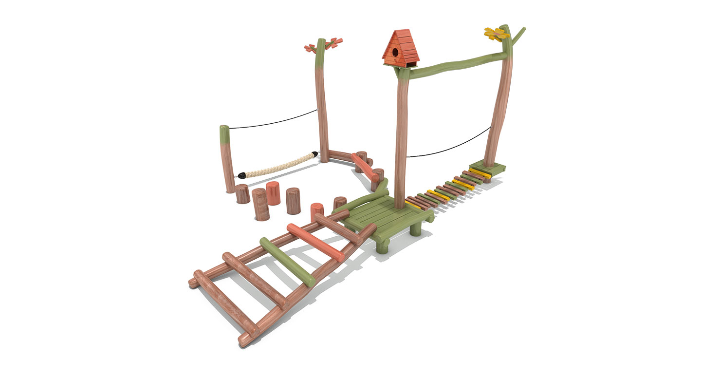 DAUM-RO-106-1 (숲속모험건너기B) 제품목록으로 바로가기 자료 및 바로가기 나라장터 바로연결 도면 다운로드 시공사진 보러가기 기타 다양한 높이와 형태의 장애물을 연속적으로 건너며 균형감각과 협응력을 기르는 숲속 테마 놀이시설입니다. 로프, 원목 발판, 사다리 등으로 구성되어 아이들이 모험심을 가지고 자연스럽게 신체활동을 즐길 수 있습니다. 제품명 DAUM-RO-106-1 (숲속모험건너기B) 물품식별번호 25489961 규격 4,176 × 6,295 × 3,117(H) 재질 robinia DAUM-RO-106-1 (숲속모험건너기B) 물품식별번호 25489961 규격 4,176 × 6,295 × 3,117(H) 재질 robinia 기타 다양한 높이와 형태의 장애물을 연속적으로 건너며 균형감각과 협응력을 기르는 숲속 테마 놀이시설입니다. 로프, 원목 발판, 사다리 등으로 구성되어 아이들이 모험심을 가지고 자연스럽게 신체활동을 즐길 수 있습니다. 자료 및 바로가기 나라장터 바로연결 도면 다운로드 시공사진 보러가기
